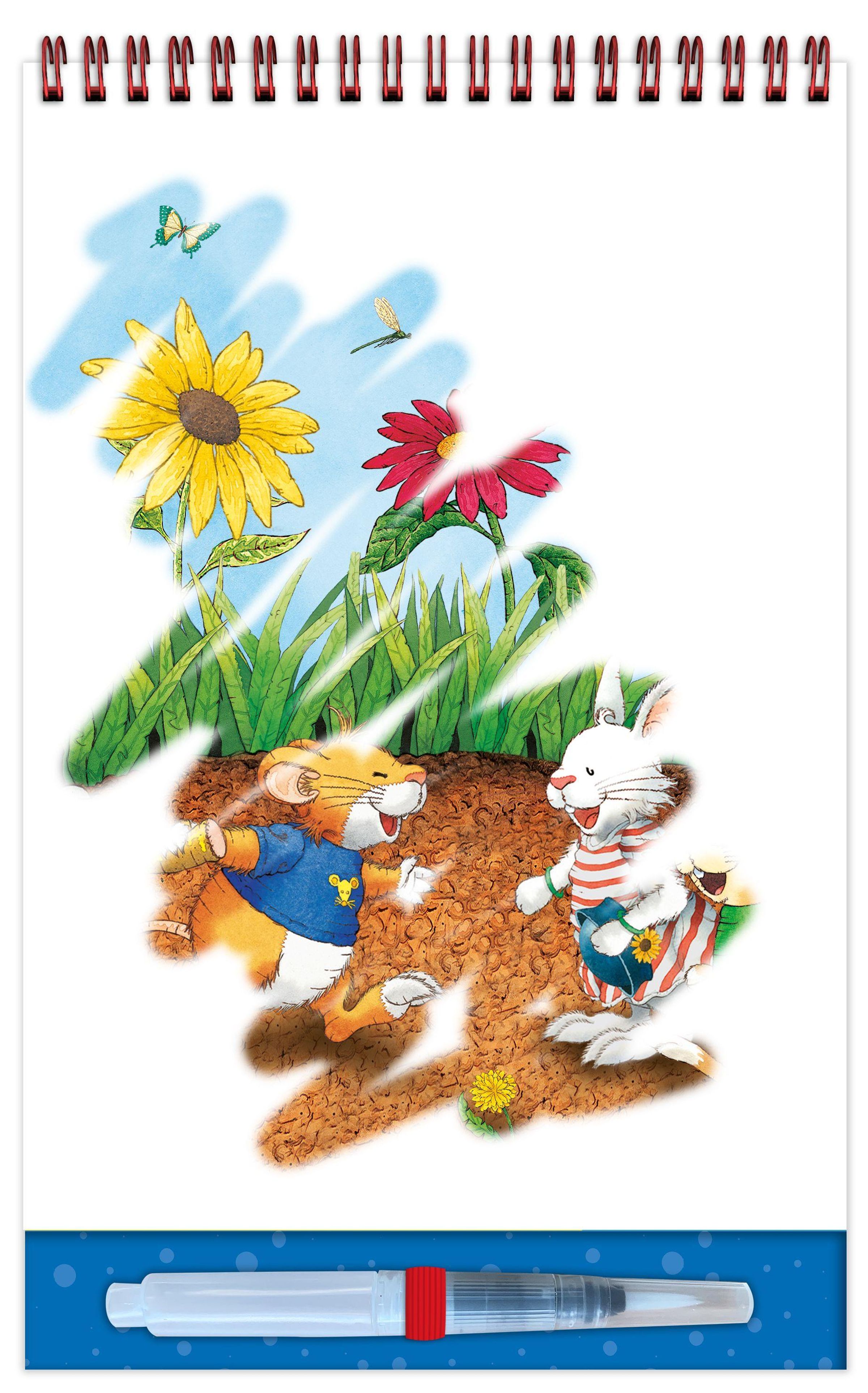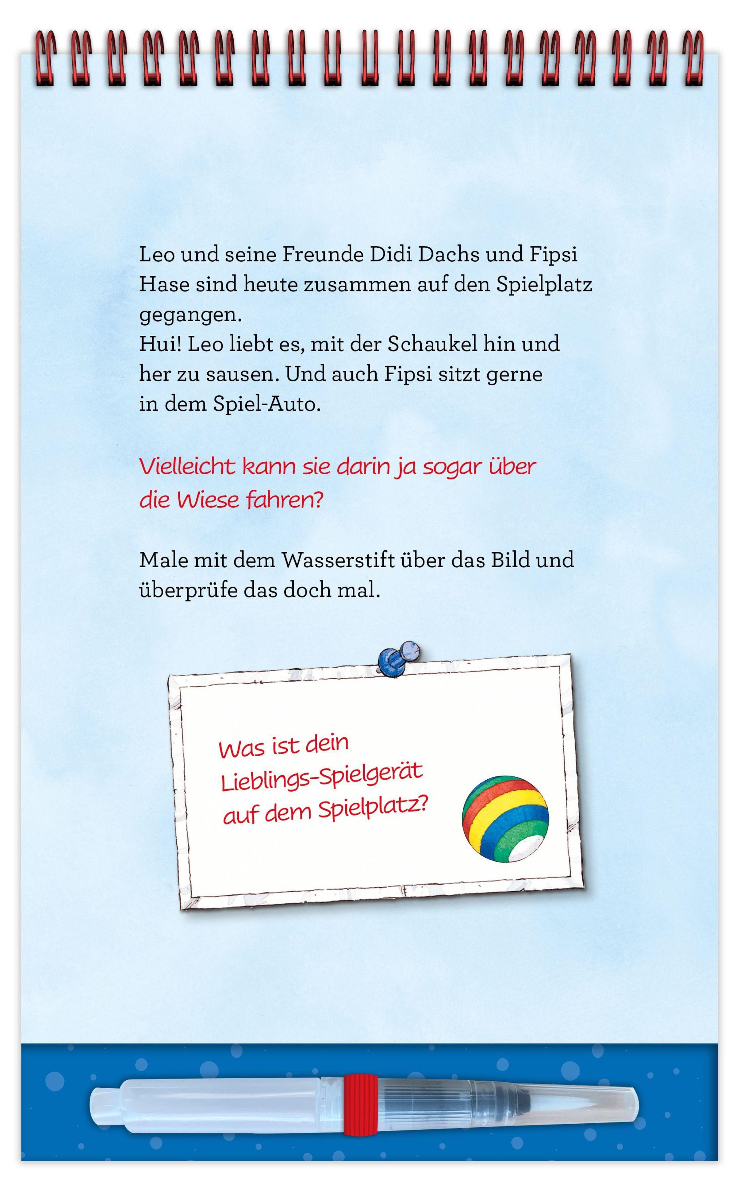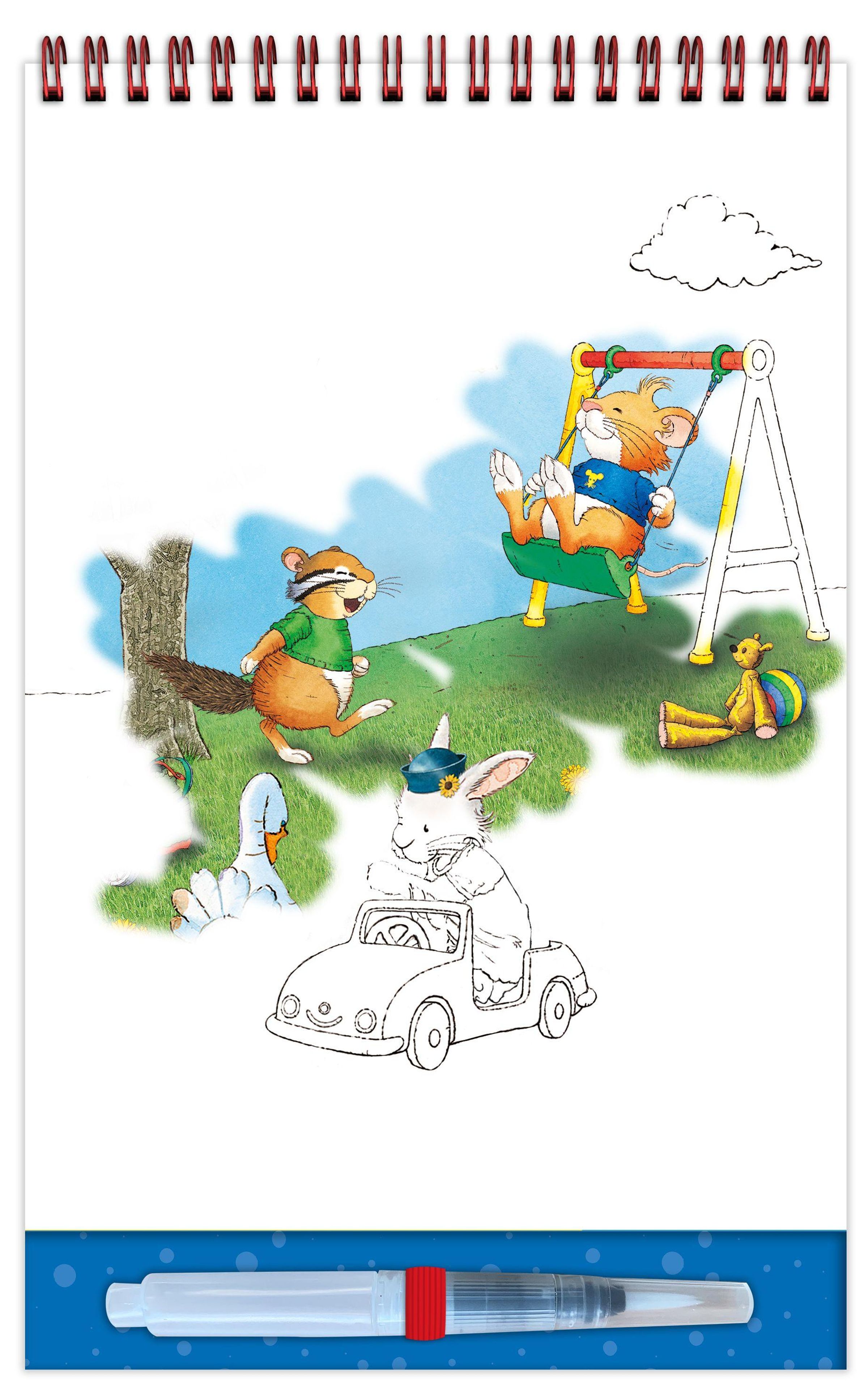 Besonders praktisch: Sobald die Seiten trocknen, verschwinden die Farben wieder, und der Malspaß kann von vorne beginnen. Kleine Such- und Entdeckeraufgaben in den Motiven sorgen für zusätzliche Spannung und fördern die Konzentration.