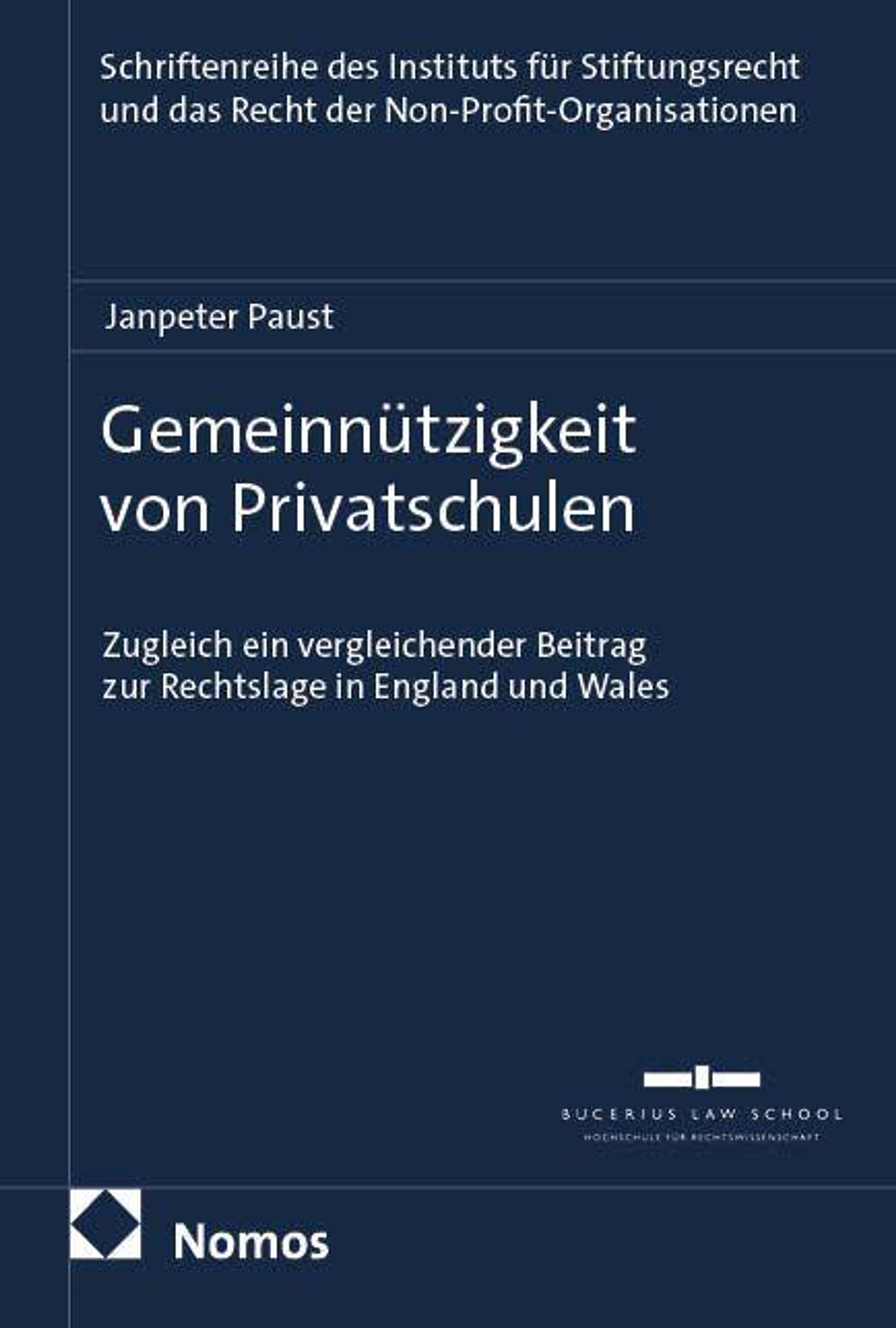 „Gemeinnützigkeit von Privatschulen“ von Janpeter Paust. Mit Logo der Bucerius Law School und Nomos Verlag., Buch