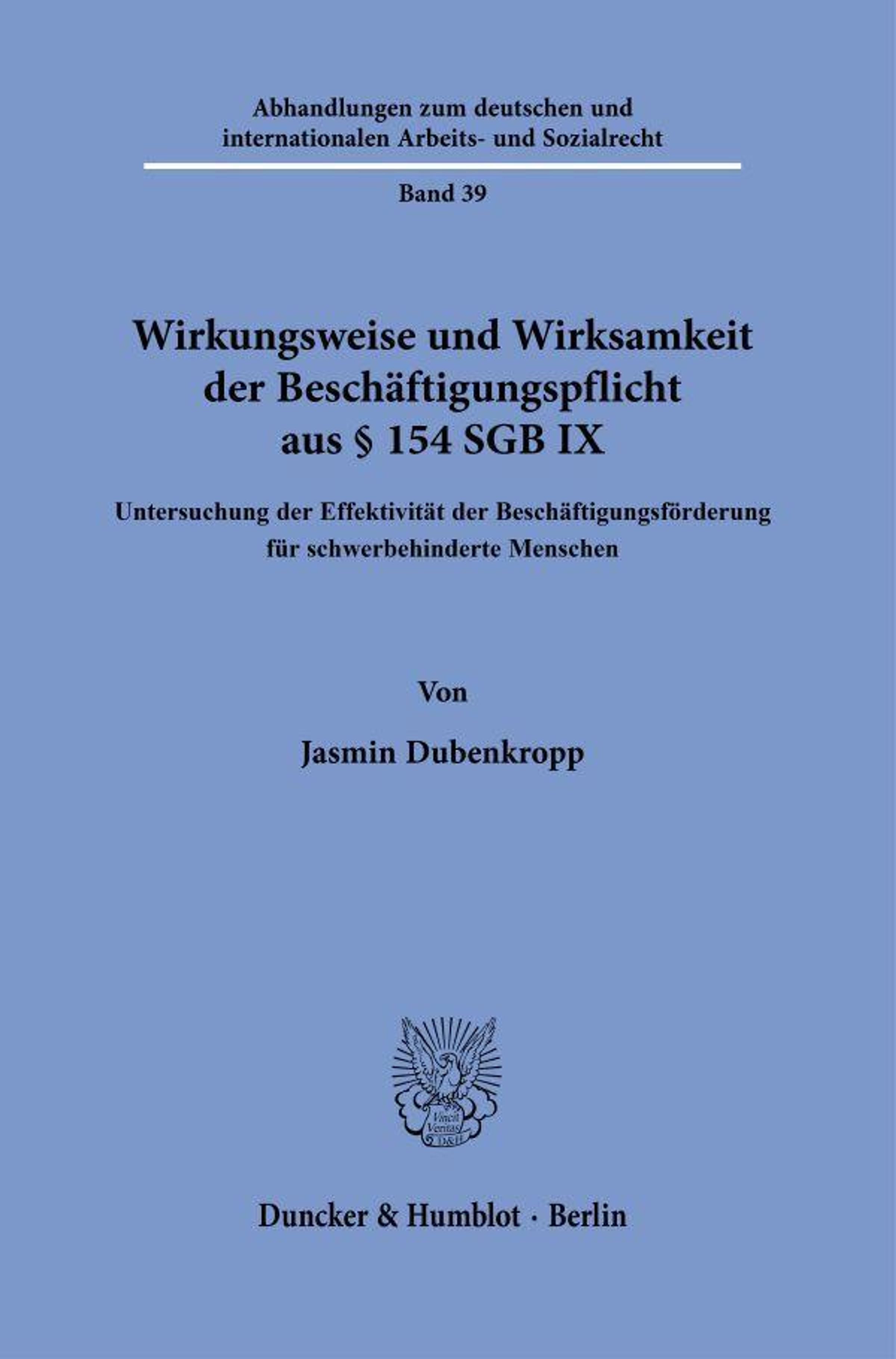 Der Artikel Jasmin Dubenkropp: Wirkungsweise und Wirksamkeit der Beschäftigungspflicht aus § 154 SGB IX wurde in den Warenkorb gelegt.