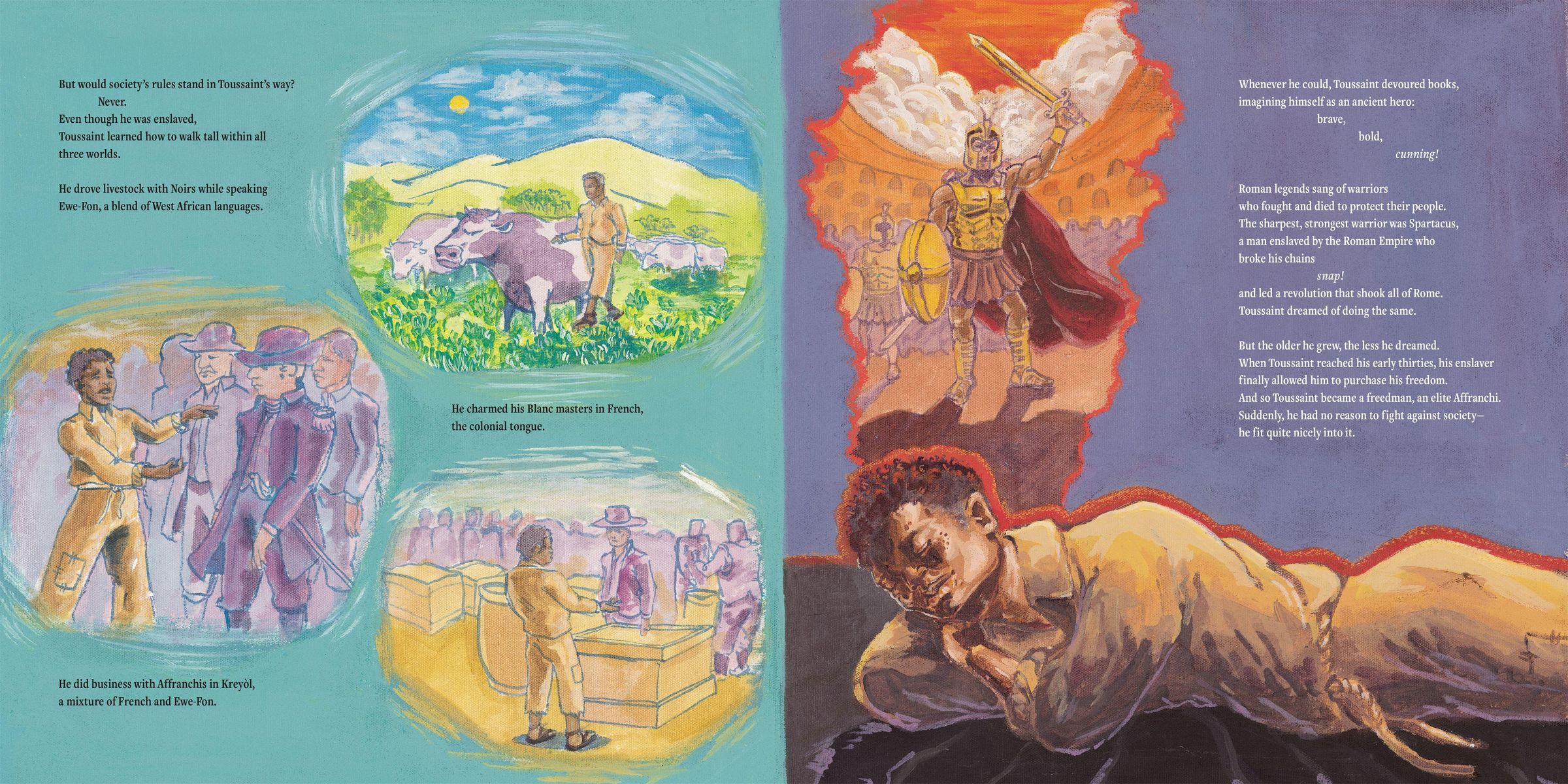This vibrant and compelling picture book biography tells the story of Toussaint Louverture, the Haitian hero who led his people to freedom. Ayiti, the Pearl of the Antilles, was once a pristine paradise. But in the 15th century, colonizers seized the island, dividing it in two and forcing enslaved Africans to labor in its sugarcane fields. For generations, the enslaved endured unimaginable suffering, all the while yearning for freedom.