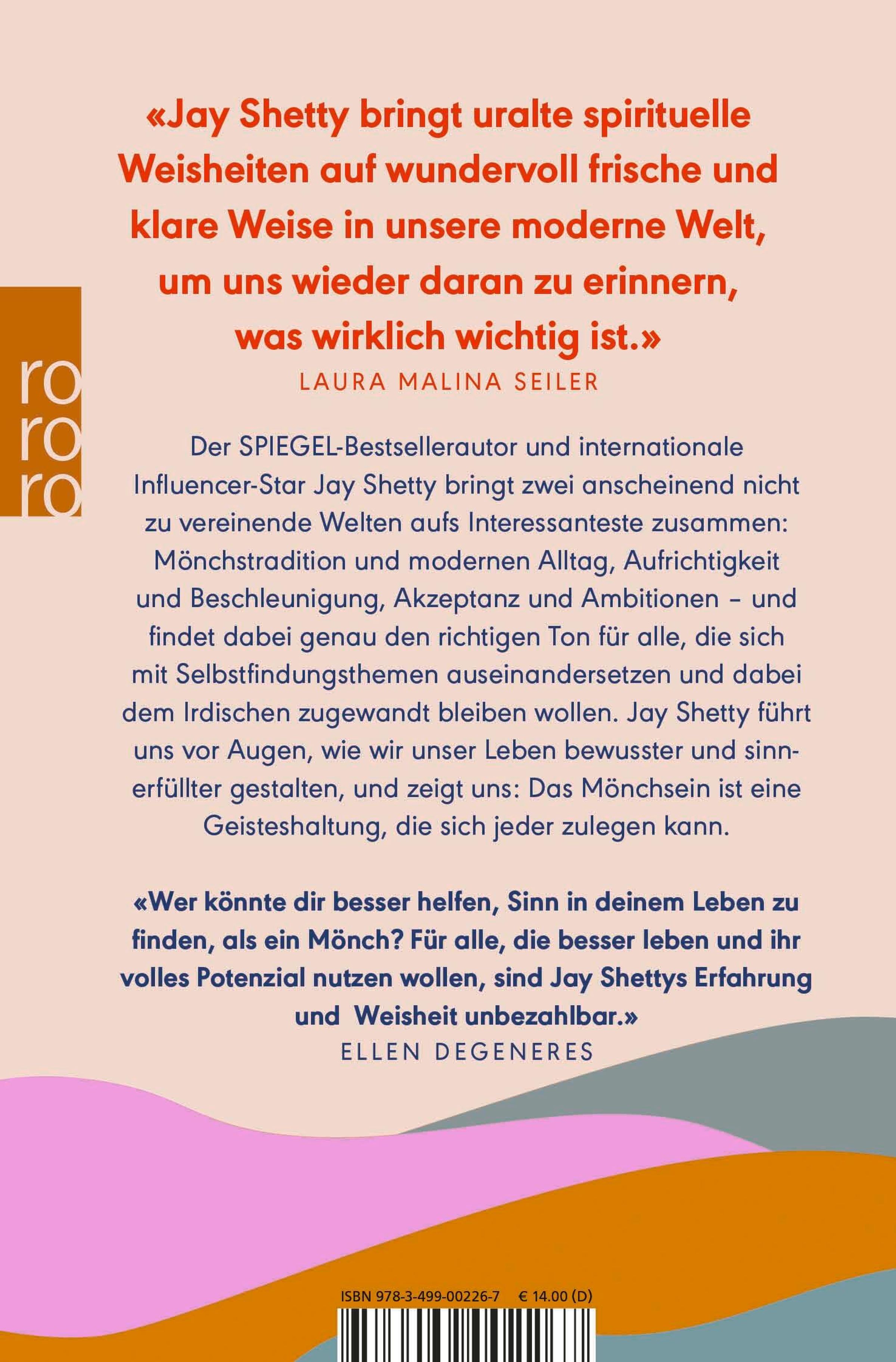 Der SPIEGEL-Bestsellerautor und internationale Influencer-Star Jay Shetty bringt zwei anscheinend nicht zu vereinende Welten aufs Interessanteste zusammen: Mönchstradition und modernen Alltag, Aufrichtigkeit und Beschleunigung, Akzeptanz und Ambitionen - und findet dabei genau den richtigen Ton für alle, die sich mit Selbstfindungsthemen auseinandersetzen und dabei dem Irdischen zugewandt bleiben wollen. Mit großem Erfolg: Heute folgen dem ehemaligen hinduistischen Mönch über 40 Millionen Menschen in den sozialen Medien. Jay Shetty führt uns vor Augen, wie wir unser Leben bewusster und sinnerfüllter gestalten, und zeigt uns: Das Mönchsein ist eine Geisteshaltung, die sich jeder zulegen kann.