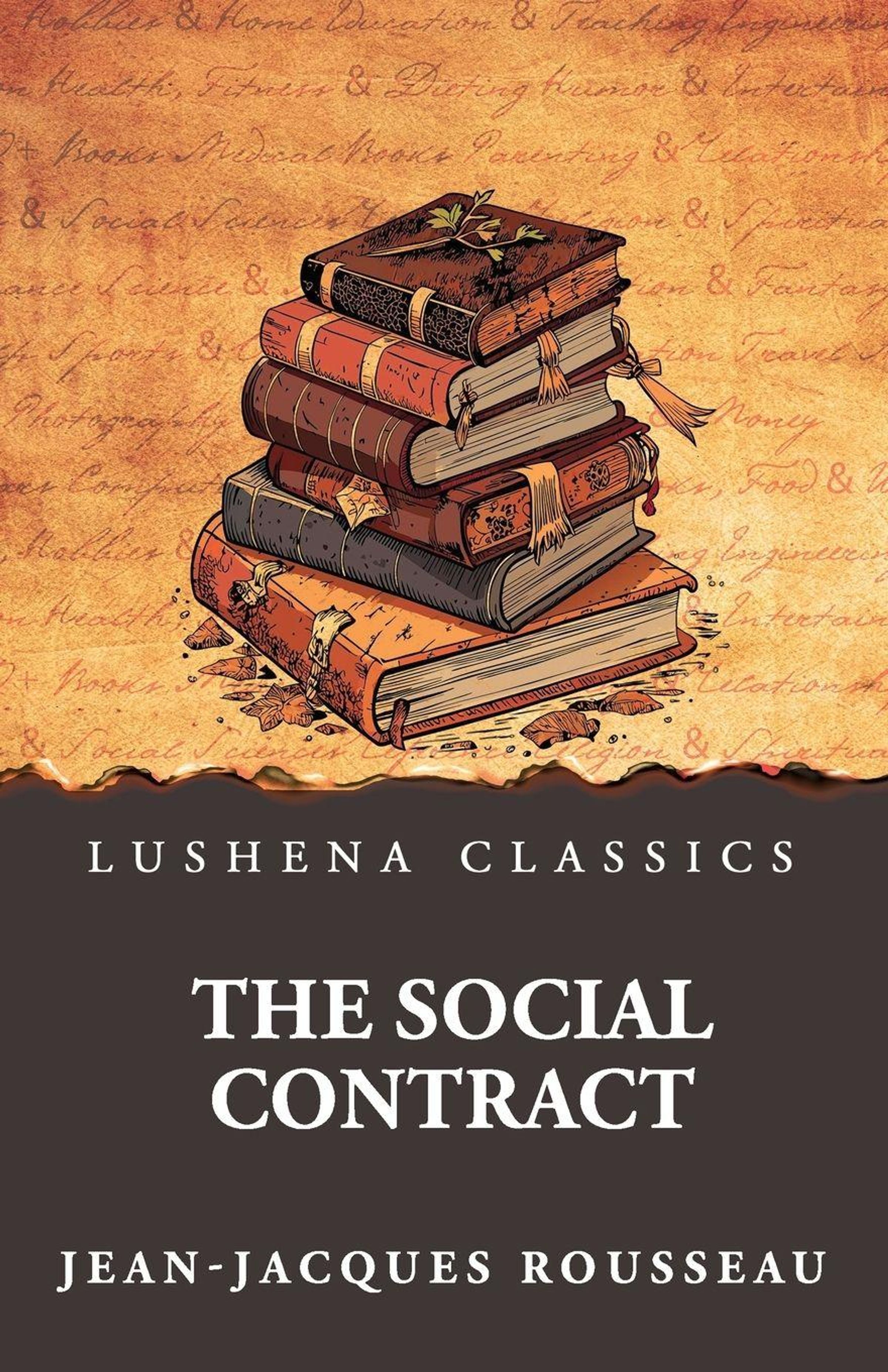 "Lushena Classics. The Social Contract. Jean-Jacques Rousseau." Illustration: Bücherstapel mit herbstlichen Blättern., Buch