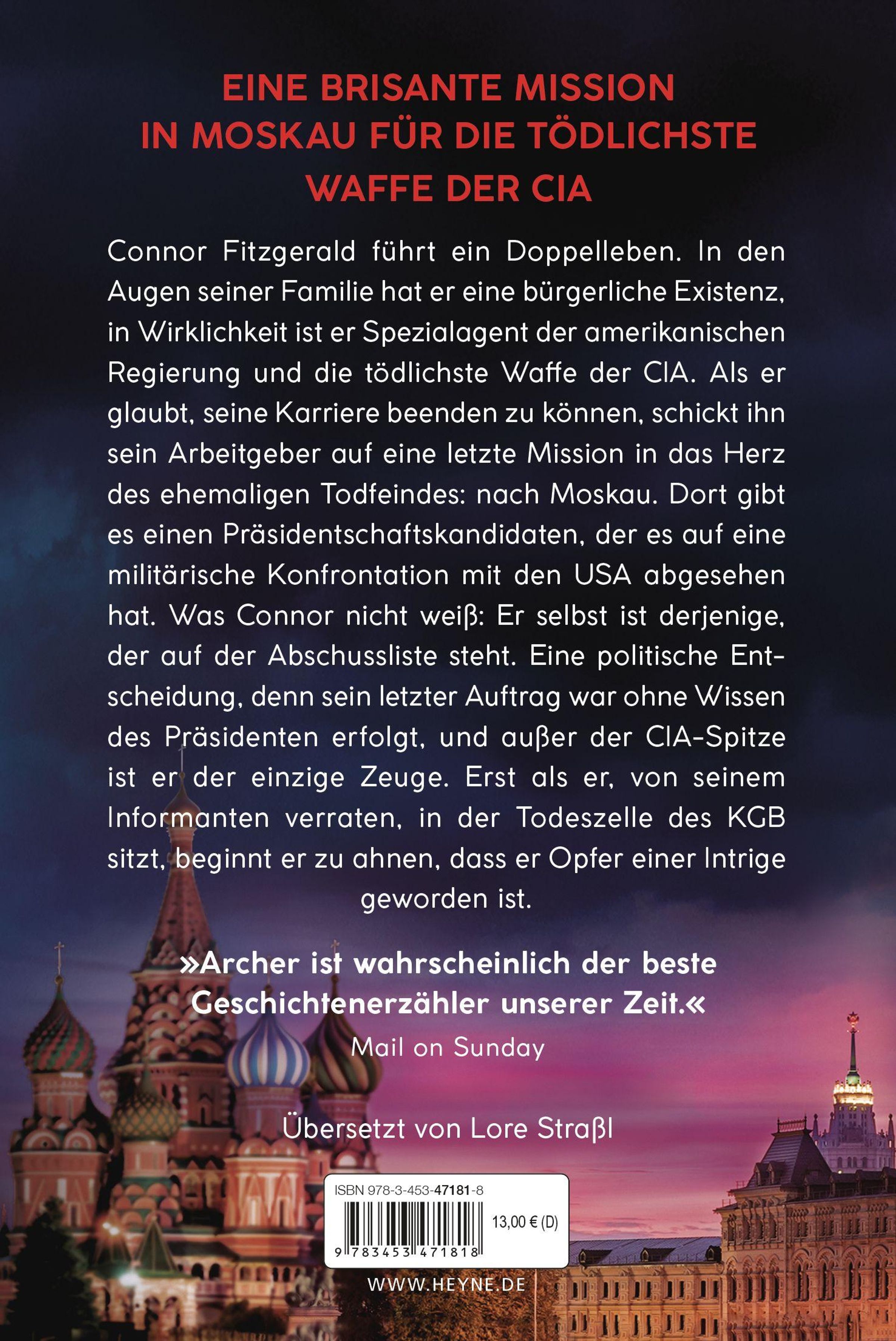 "Jeffrey Archer. Das elfte Gebot. Heyne. Roman." Ein Mann läuft auf einen farbenfrohen Dom zu, im Abendlicht., Buch