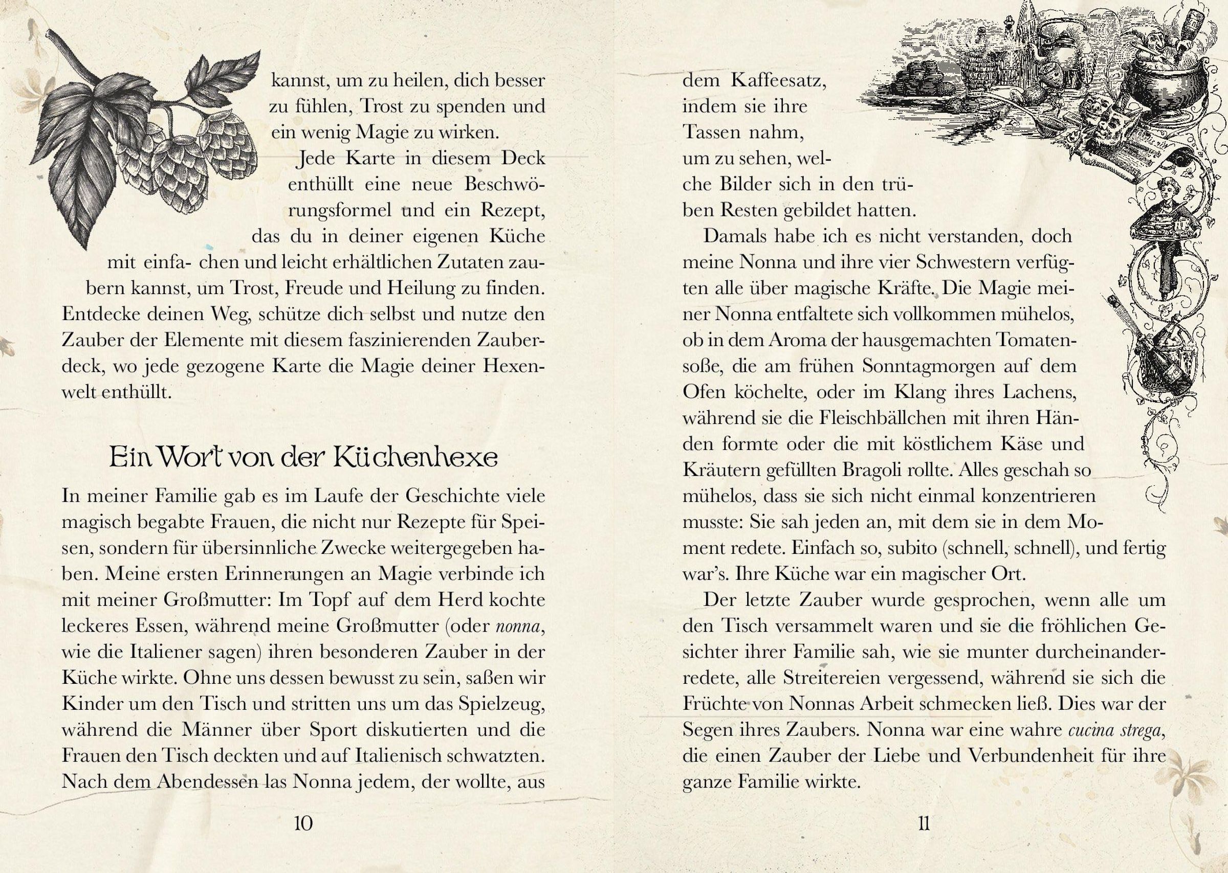 Jede der 36 von der Ausnahmekünstlerin Jena Dellagrottalia liebevoll gestalteten Karten enthält eine magische Formel, um zu manifestieren, sich zu schützen, zu fokussieren oder wieder in Balance zu kommen. Zudem wird ein im Begleitbuch genau beschriebenes Rezept enthüllt, dass du in deiner eigenen Küche mit leicht erhältlichen Zutaten brauen kannst, um Trost, Freude und Heilung zu finden.