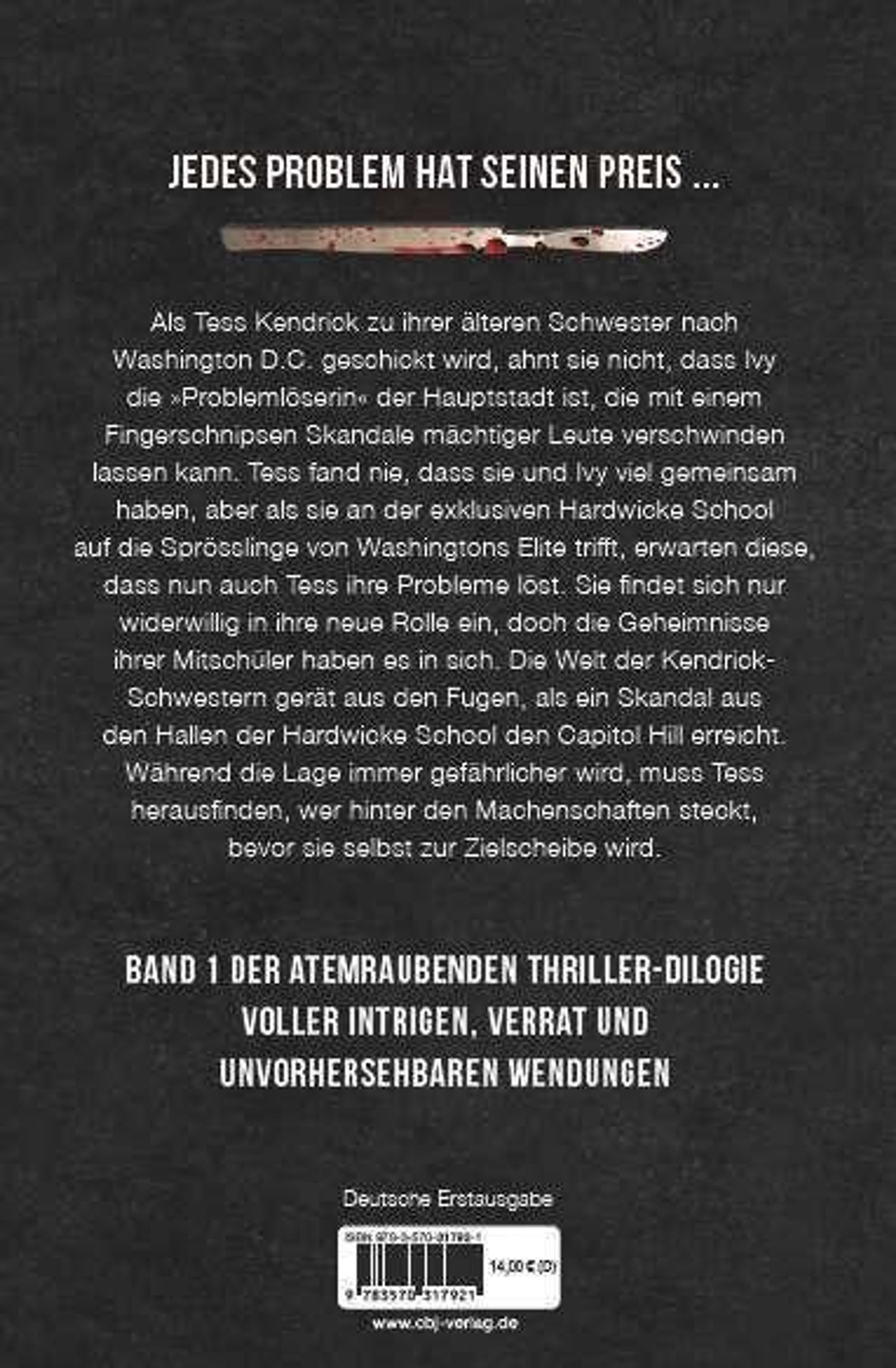Als Tess Kendrick zu ihrer älteren Schwester nach Washington D. C. geschickt wird, ahnt sie nicht, dass Ivy die 'Problemlöserin' der Hauptstadt ist, die mit einem Fingerschnipsen Skandale mächtiger Leute verschwinden lassen kann. Tess fand nie, dass sie und Ivy viel gemeinsam haben, aber als sie an der exklusiven Hardwicke School auf die Sprösslinge von Washingtons Elite trifft, erwarten die, dass Tess nun auch ihre Probleme löst und so findet sie sich widerwillig in dieser Rolle wieder. Doch diese Geheimnisse haben es in sich und die Welt der Kendrick-Schwestern gerät aus den Fugen, als ein Skandal aus den Hallen der Hardwicke School den Capitol Hill erreicht. Als die Lage immer gefährlicher wird, muss Tess herausfinden, wer hinter den Machenschaften steckt, bevor sie selbst zur Zielscheibe wird.