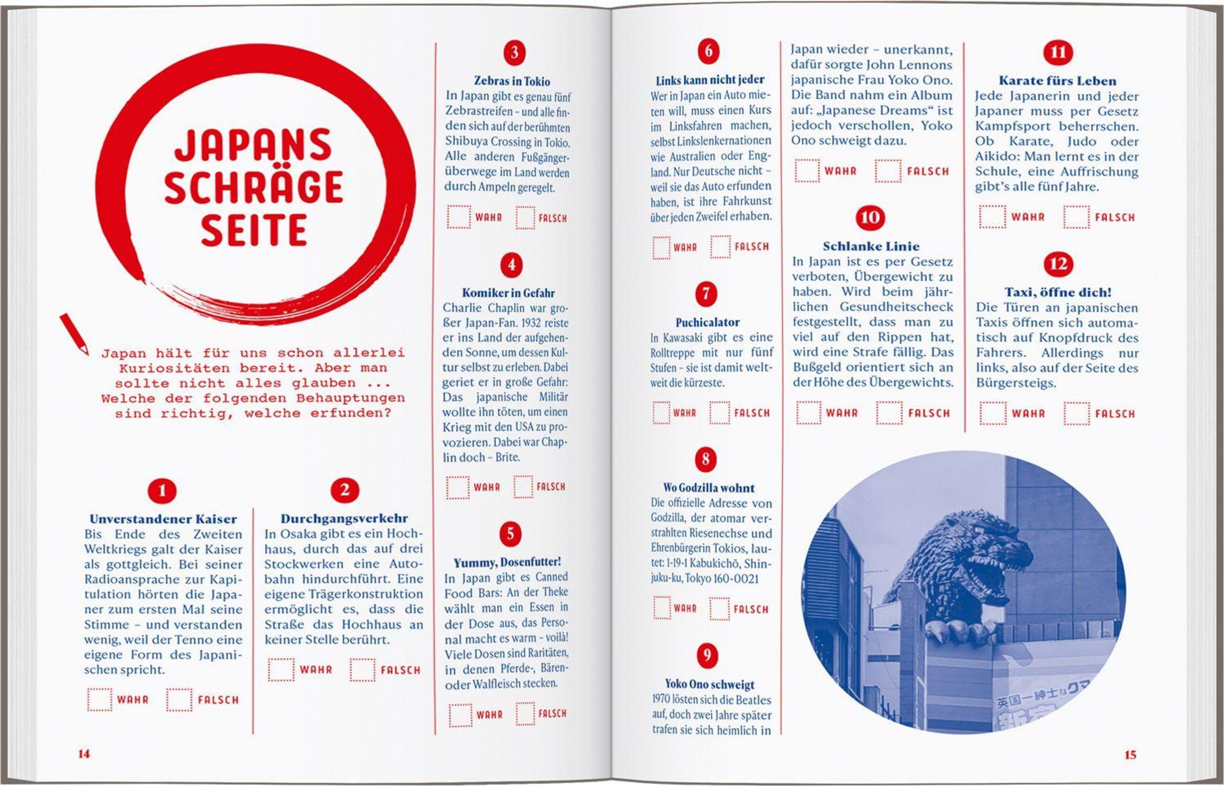 STAUNEN, WAS DAZULERNEN, die Zeit vergessen: DUMONTs Fantastische Rätselreisen sind voller abwechslungsreicher Knobeleien, die einmal quer durch Japan führen. Durch dampfende Garküchen und stille Klöster, durch wuselige Megacities und einsame Landschaften. Von quirliger Popkultur bis erhabene Traditionen. Quizfragen, Texträtsel, Sudokus, Bilderrätsel - für diese Japanreise braucht's nur kleines Handgepäck: logisches Denken, ein gutes Auge, etwas Allgemeinwissen. Und ganz viel Neugierde auf das Land der aufgehenden Sonne!