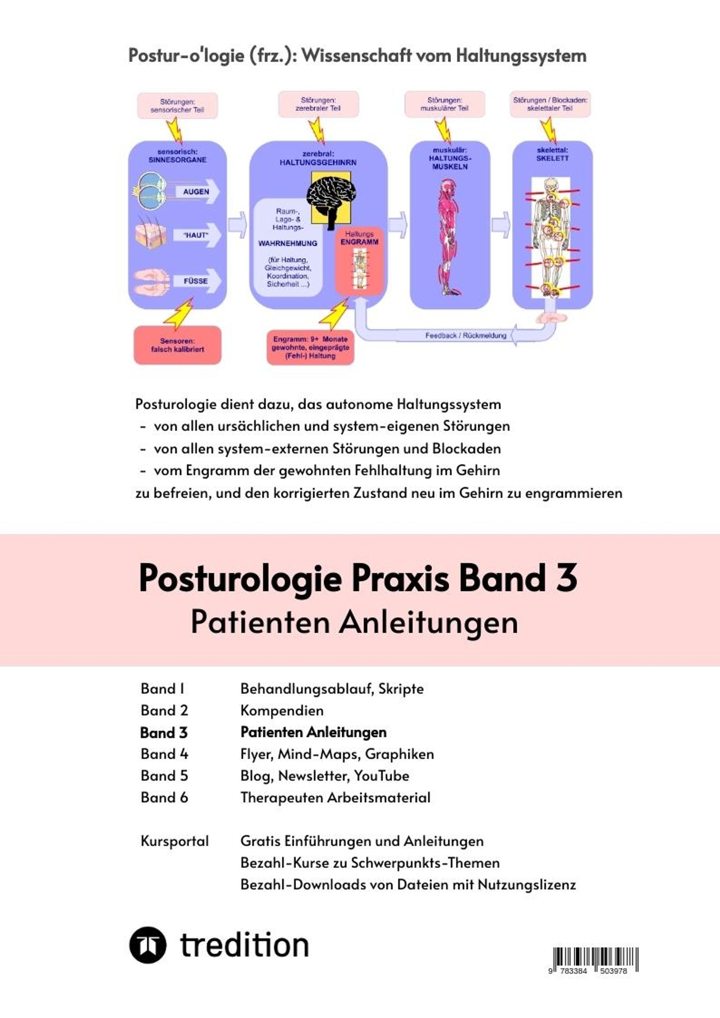 • Patienten Anleitungen: Posturologie Übungen und Massnahmen. Ergänzend viele grundlegende Empfehlungen für die Gesundheit des Bewegungsapparats.
