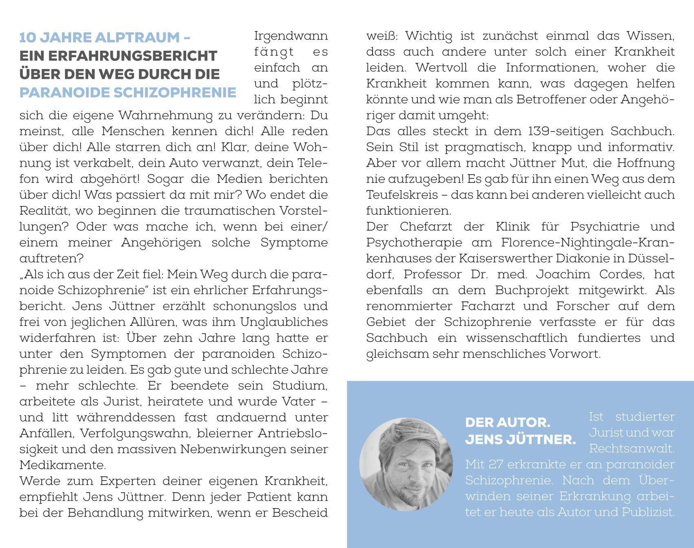 Bei diesem Buch handelt es sich um einen ehrlichen Erfahrungsbericht . Er erzählt schonungslos und frei von jeglichen Allüren , was ihm Unglaubliches widerfahren ist: Über zehn Jahre lang hatte er unter den Symptomen der paranoiden Schizophrenie zu leiden. Es gab gute und schlechte Jahre - mehr schlechte. Er beendete sein Studium, heiratete und wurde Vater - und litt währenddessen unter Anfällen, Verfolgungswahn, bleierner Antriebslosigkeit und den Nebenwirkungen seiner Medikamente.