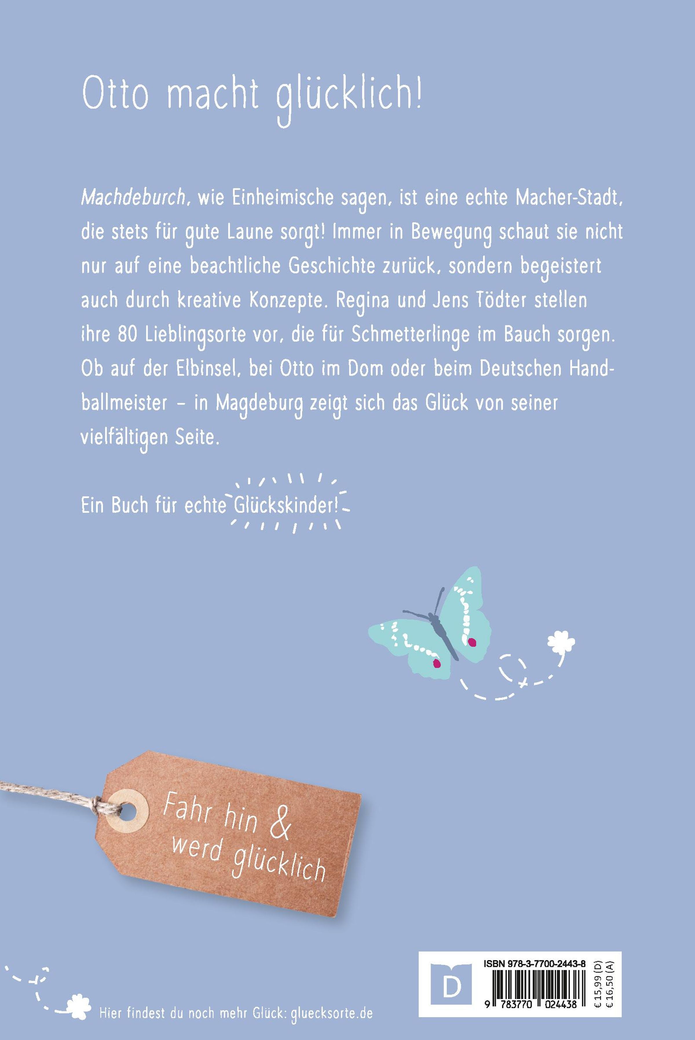 Machdeburch, wie Einheimische sagen, ist eine echte Macher-Stadt, die stets für gute Laune sorgt! Immer in Bewegung schaut sie nicht nur auf eine beachtliche Geschichte zurück, sondern begeistert auch durch kreative Konzepte. Regina und Jens Tödter stellen ihre 80 Lieblingsorte vor, die für Schmetterlinge im Bauch sorgen. Ob auf der Elbinsel, bei Otto im Dom oder beim Deutschen Handballmeister - in Magdeburg zeigt sich das Glück von seiner vielfältigen Seite.