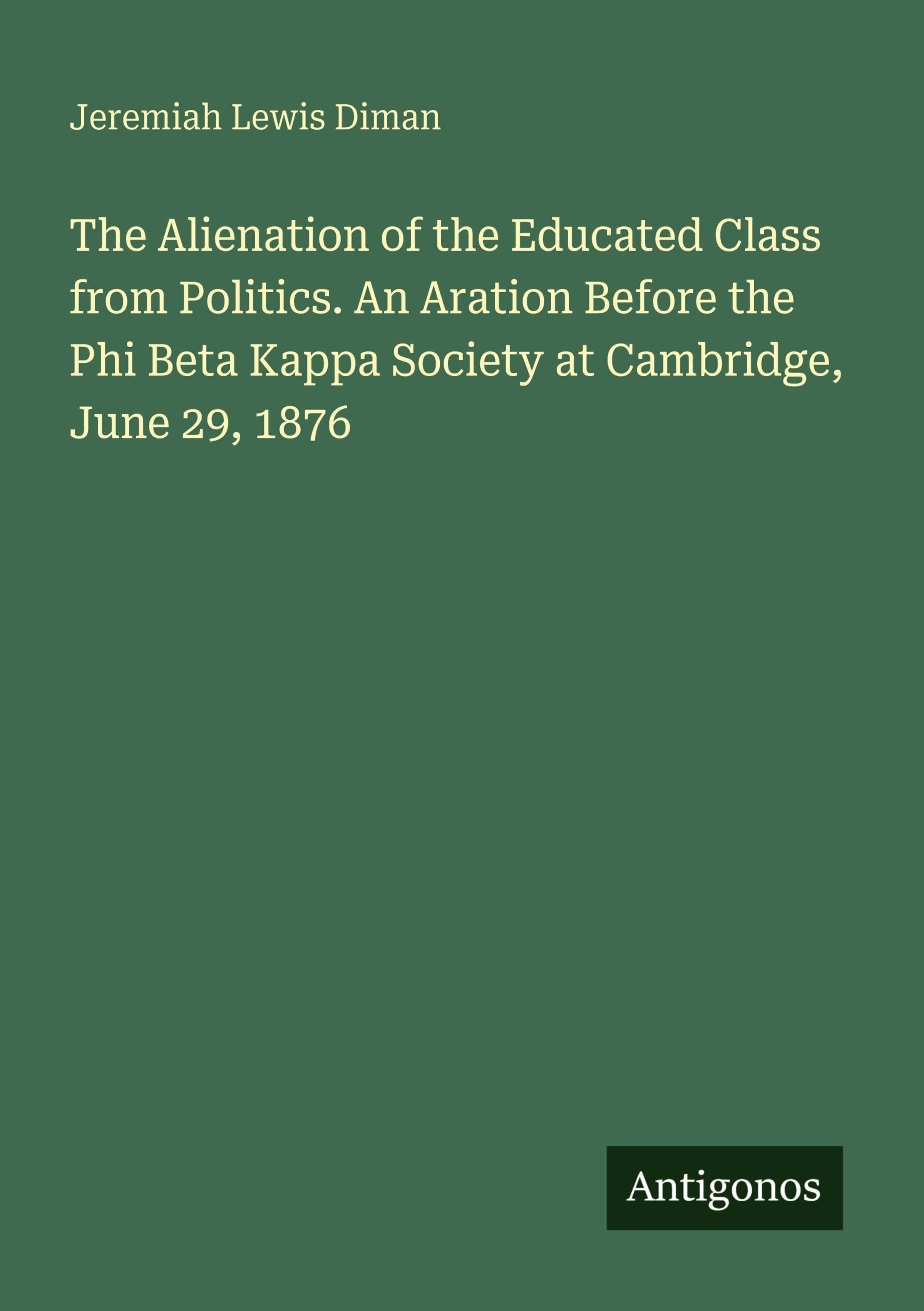 The Alienation of the Educated Class from Politics. An Aration Before the Phi Beta Kappa Society at Cambridge, June 29, 1876