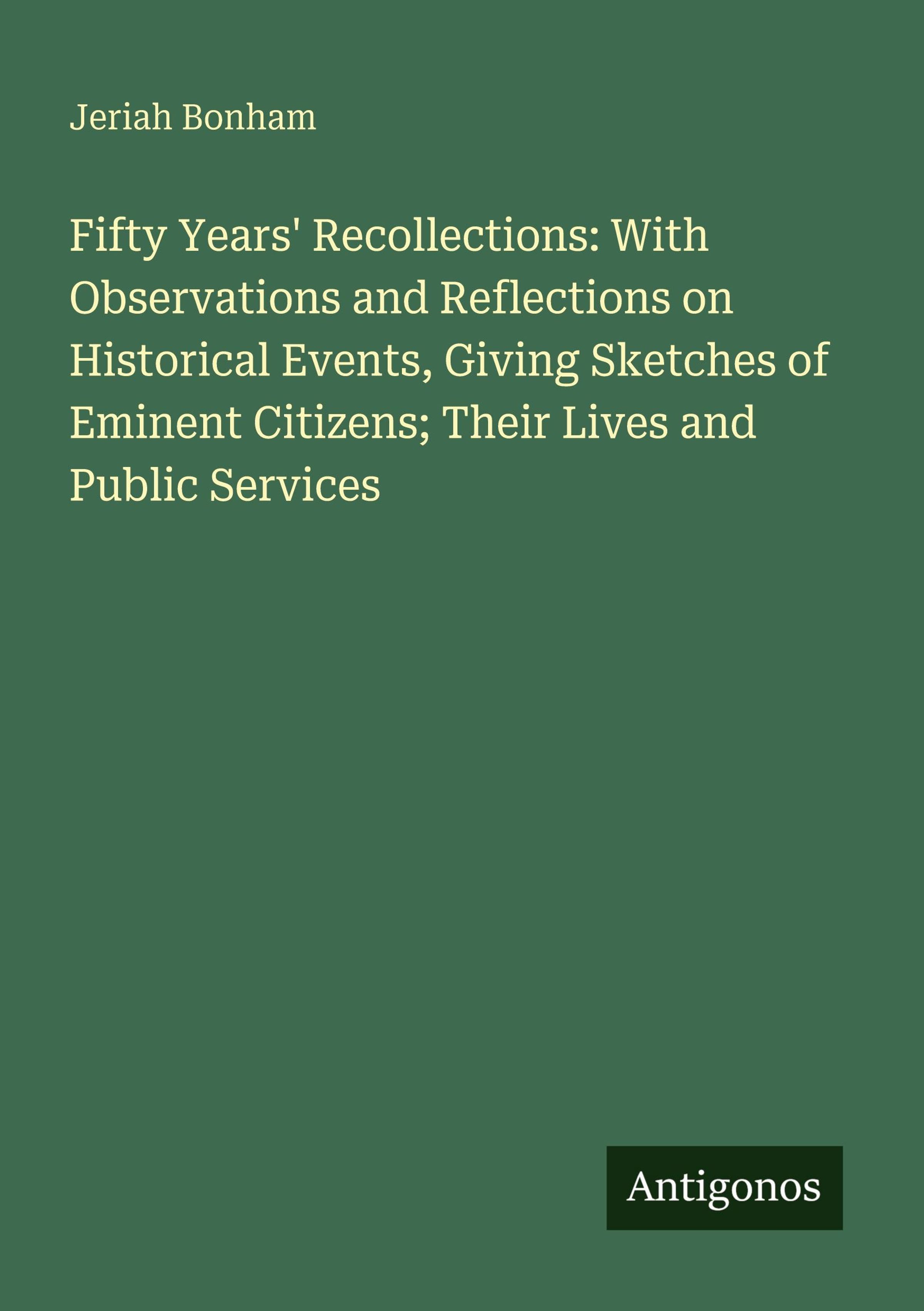 Fifty Years' Recollections: With Observations and Reflections on Historical Events, Giving Sketches of Eminent Citizens; Their Lives and Public Services