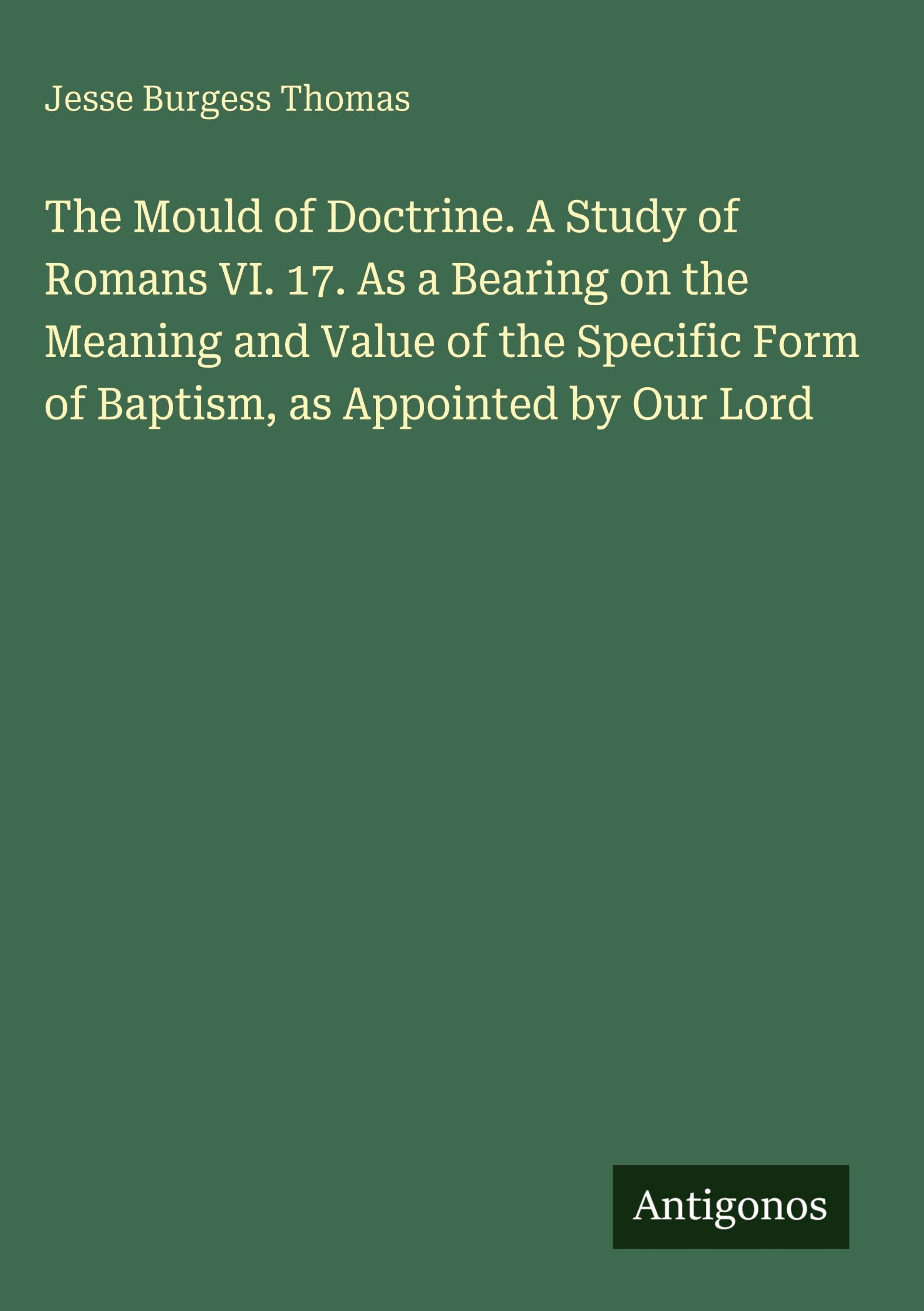 Jesse Burgess Thomas: The Mould of Doctrine. A Study of Romans VI. 17. As a Bearing on the Meaning and Value of..., Gebunden