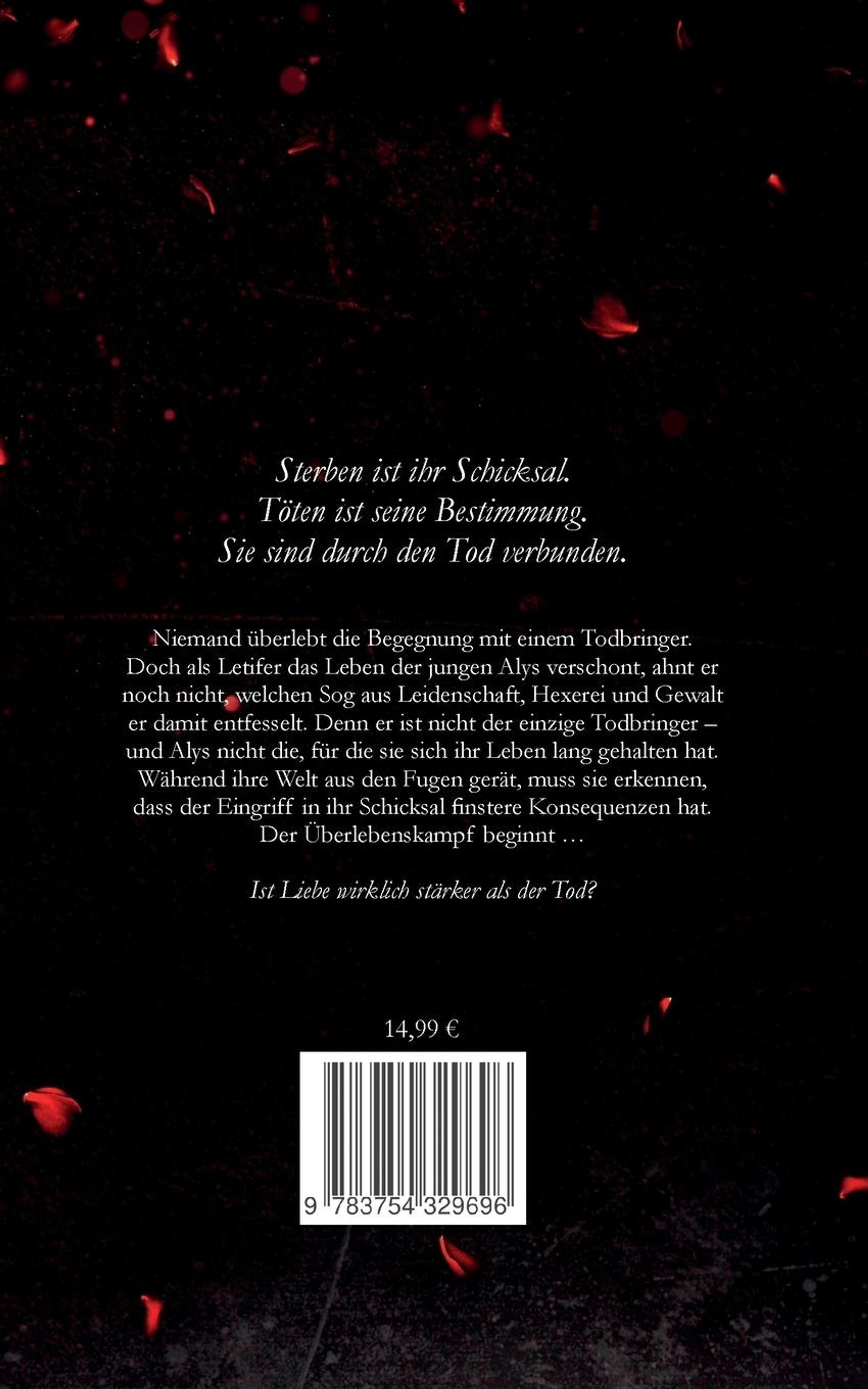 Niemand überlebt die Begegnung mit einem Todbringer. Doch als Letifer das Leben der jungen Alys verschont, ahnt er noch nicht, welchen Sog aus Leidenschaft, Hexerei und Gewalt er damit entfesselt. Denn er ist nicht der einzige Todbringer - und Alys nicht die, für die sie sich ihr Leben lang gehalten hat. Während ihre Welt aus den Fugen gerät, muss sie erkennen, dass der Eingriff in ihr Schicksal finstere Konsequenzen hat. Der Überlebenskampf beginnt ...