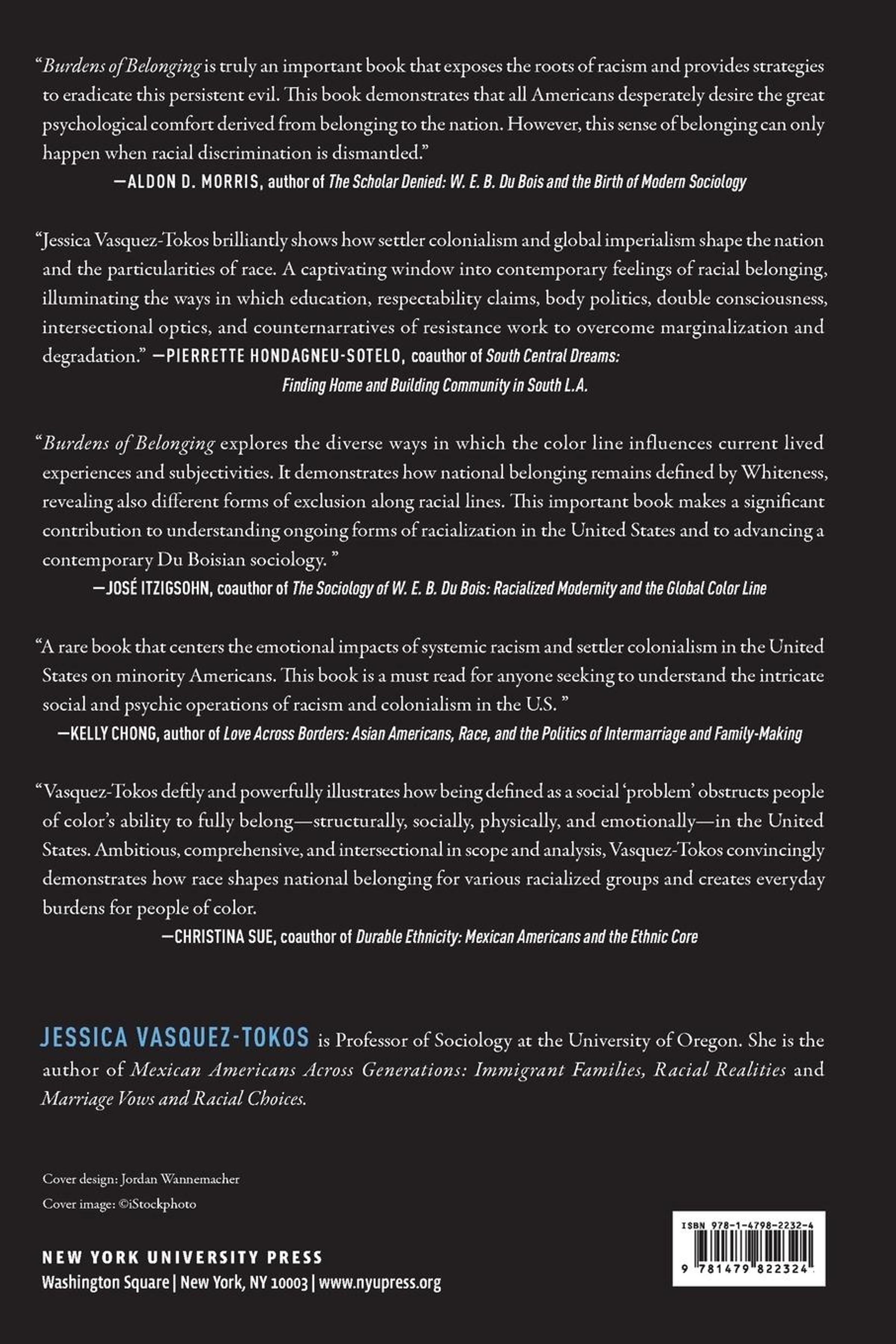 W. E.B. Du Bois famously pondered a question he felt society was asking of him as a Black man in America: "How does it feel to be a problem?" Jessica Vasquez-Tokos uses this question to examine how communities of color are constructed as "problems," and the numerous ramifications this has for their life trajectories. Uncovering how various members of racial groups understand and react to what their racial status means for inclusion in, or exclusion from, the nation, Burdens of Belonging examines the historical underpinnings of the racial-colonial hierarchy, the influence this hierarchy has on lived experience, and how racialized life experience influences the feelings, perspectives and goals of people of color.