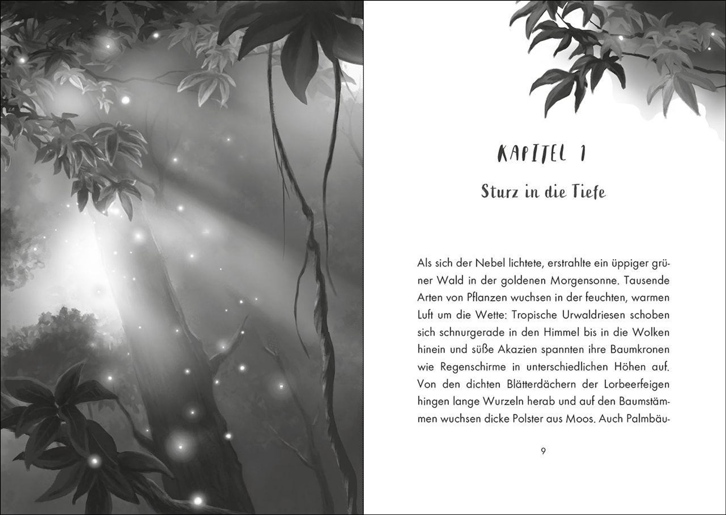 Eine faszinierende Welt: Erkunde den Tausendflügelwald ober- und unterhalb der Baumwipfel. Mit atmosphärischen Schwarz-Weiß-Illustrationen von Marie Beschorner.