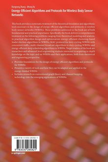 This book provides a systematic treatment of the theoretical foundation and algorithmic tools necessary in the design of energy-efficient algorithms and protocols in wireless body sensor networks (WBSNs). These problems addressed in the book are of both fundamental and practical importance. Specifically, the book delivers a comprehensive treatment on the following problems ranging from theoretical modeling and analysis, to practical algorithm design and optimization: energy-efficient clustering-based leader election algorithms in WBSNs; MAC protocol for duty-cycling WBSNs with concurrent traffic; multi-channel broadcast algorithms in duty-cycling WBSNs; and energy-efficient sleep scheduling algorithms in WBSNs. Target readers of the book are researchers and advanced-level engineering students interested in acquiring in-depth knowledge on the topic and on WBSNs and their applications, both from theoretical and engineering perspective.