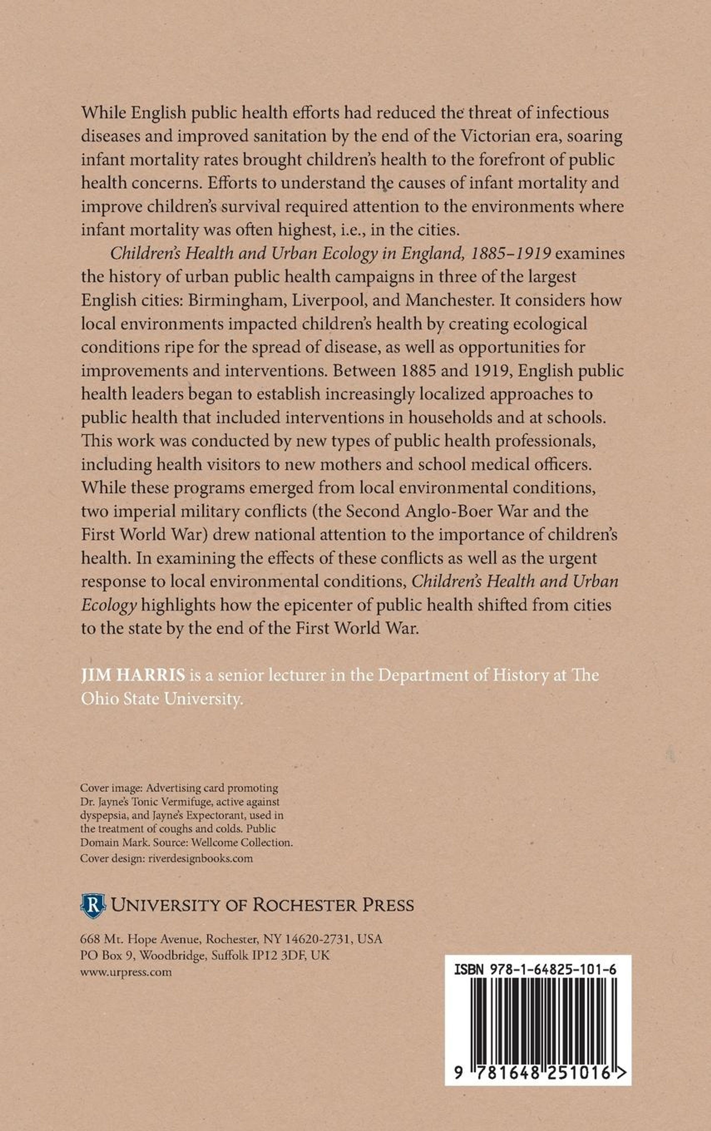 Children's Health and Urban Ecology in England, 1885-1919 examines the history of urban public health campaigns in three of the largest English cities, Birmingham, Liverpool and Manchester. It considers how local environments impacted children's health by creating ecological conditions ripe for the spread of disease, as well as opportunities for improvements and interventions. Between 1885 and 1919, English public health leaders began to establish increasingly localized approaches to public health that included interventions in households and at schools. This work was conducted by new types of public health professionals, including health visitors to new mothers and school medical officers. While these programs emerged from local environmental conditions, two imperial military conflicts (the Second Anglo-Boer War and the First World War) drew national attention to the importance of children's health. In examining the effects of these conflicts as well as the urgent response to local environmental conditions, Children's Health and Urban Ecology highlights how the epicenter of public health shifted from cities to the state by the end of the First World War.