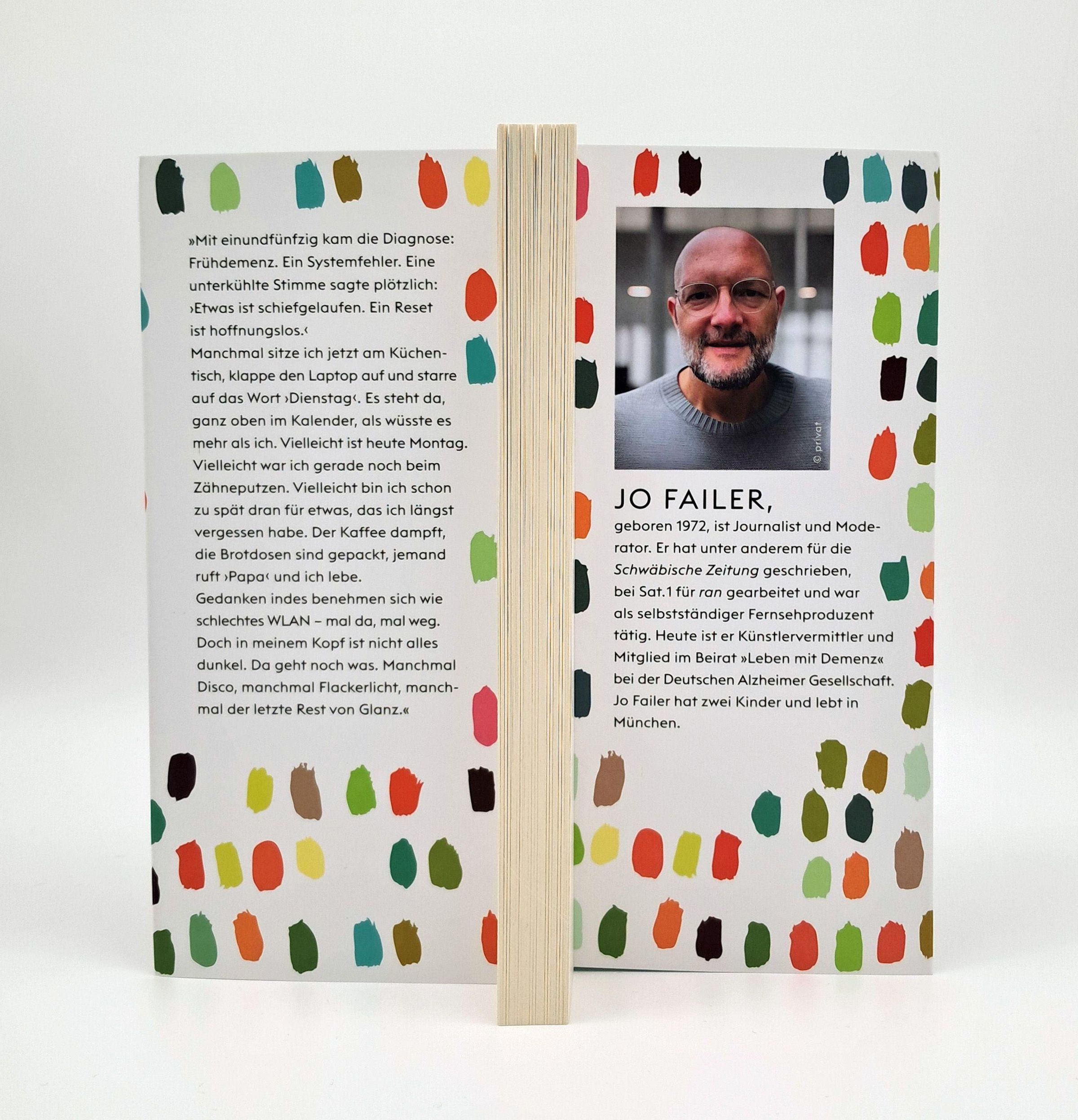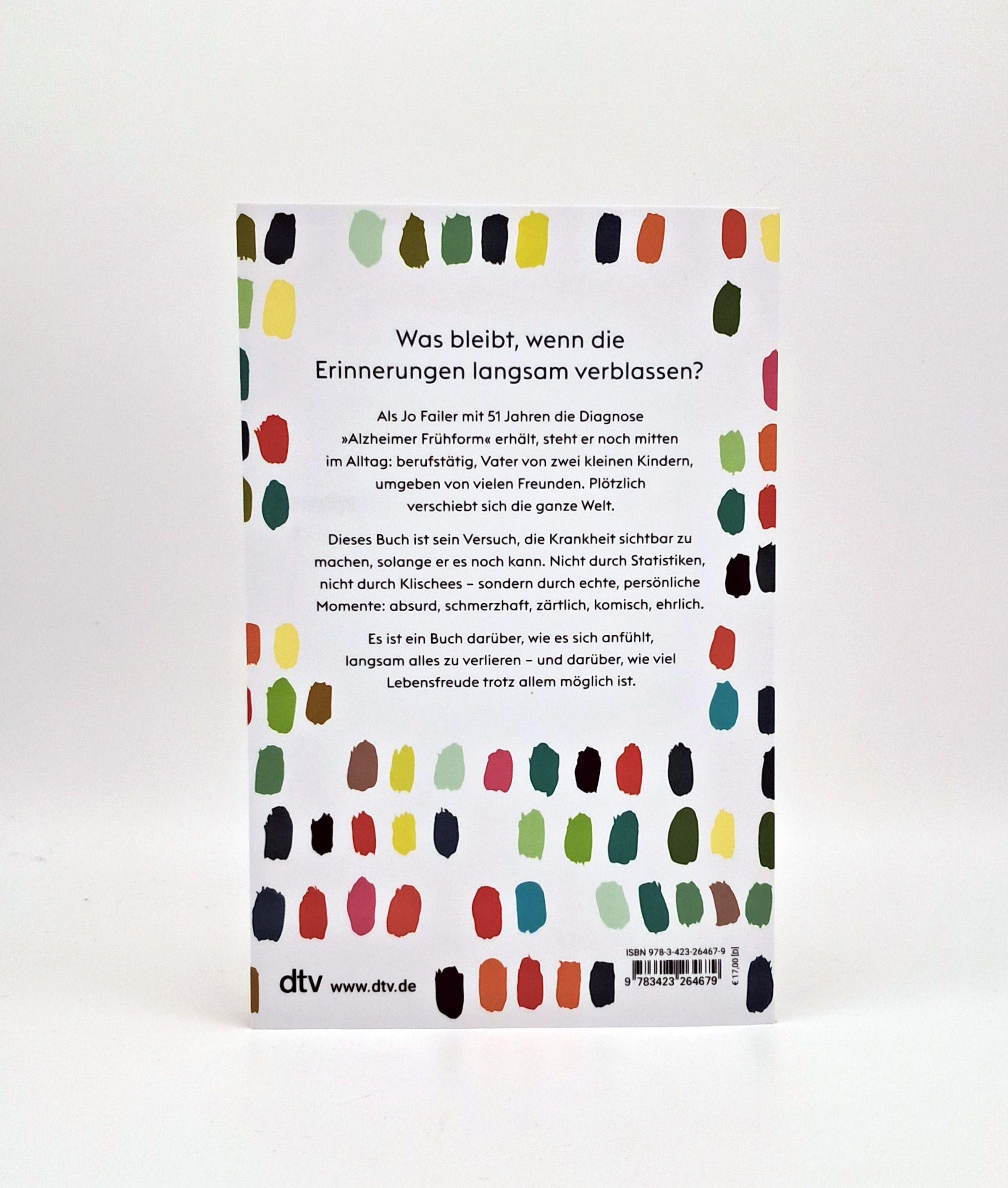 Als Jo Failer mit 51 Jahren die Diagnose 'Alzheimer Frühform' erhält, steht er noch mitten im Alltag: berufstätig, Vater von zwei kleinen Kindern, umgeben von vielen Freunden. Sein Buch ist der Versuch, die Krankheit sichtbar zu machen, solange er es noch kann. Nicht durch Statistiken, nicht durch Klischees - sondern durch echte, persönliche Momente.