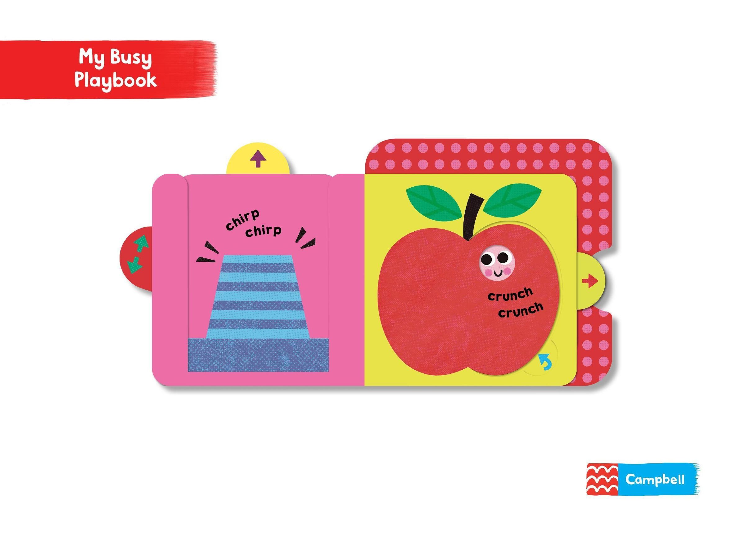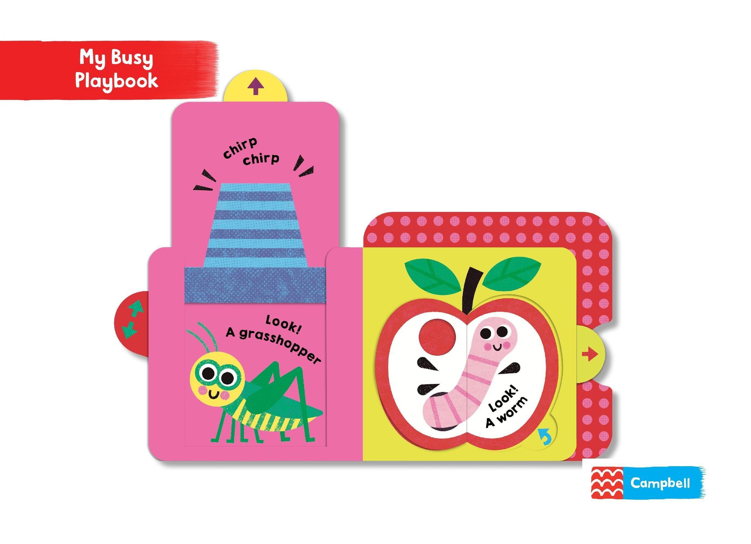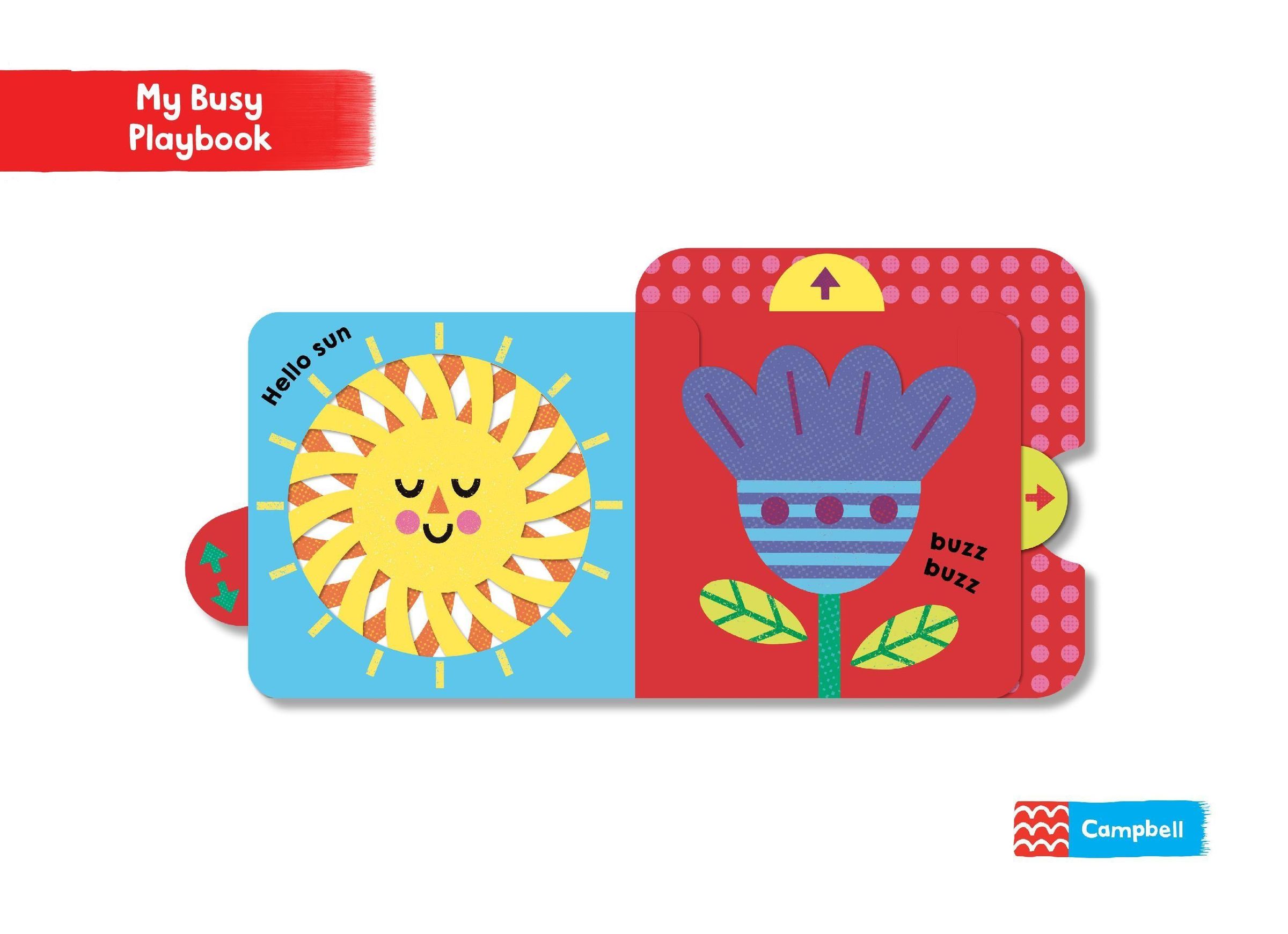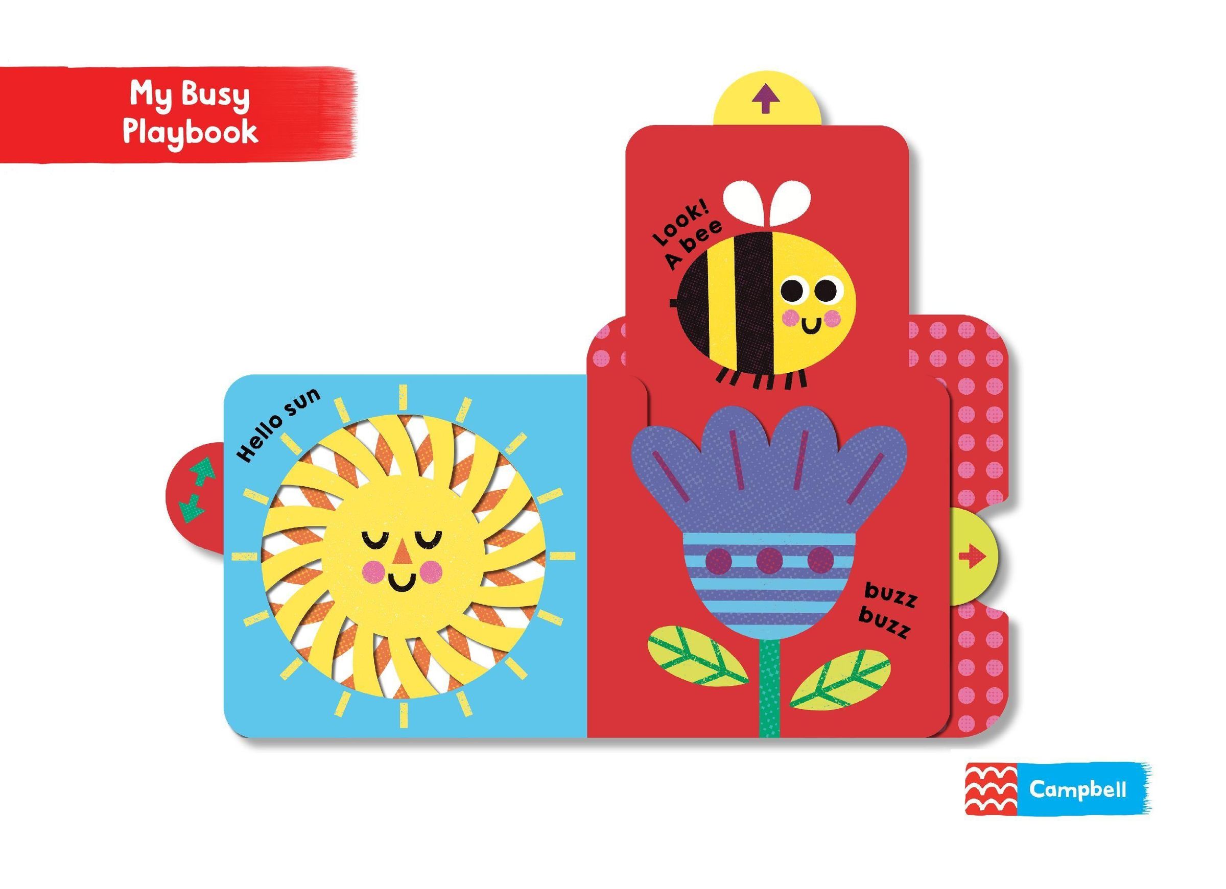My Busy Playbook is an interactive activity book for busy little hands and minds. Babies will love to tug and twist the chunky tabs, lift the flaps and play peekaboo!