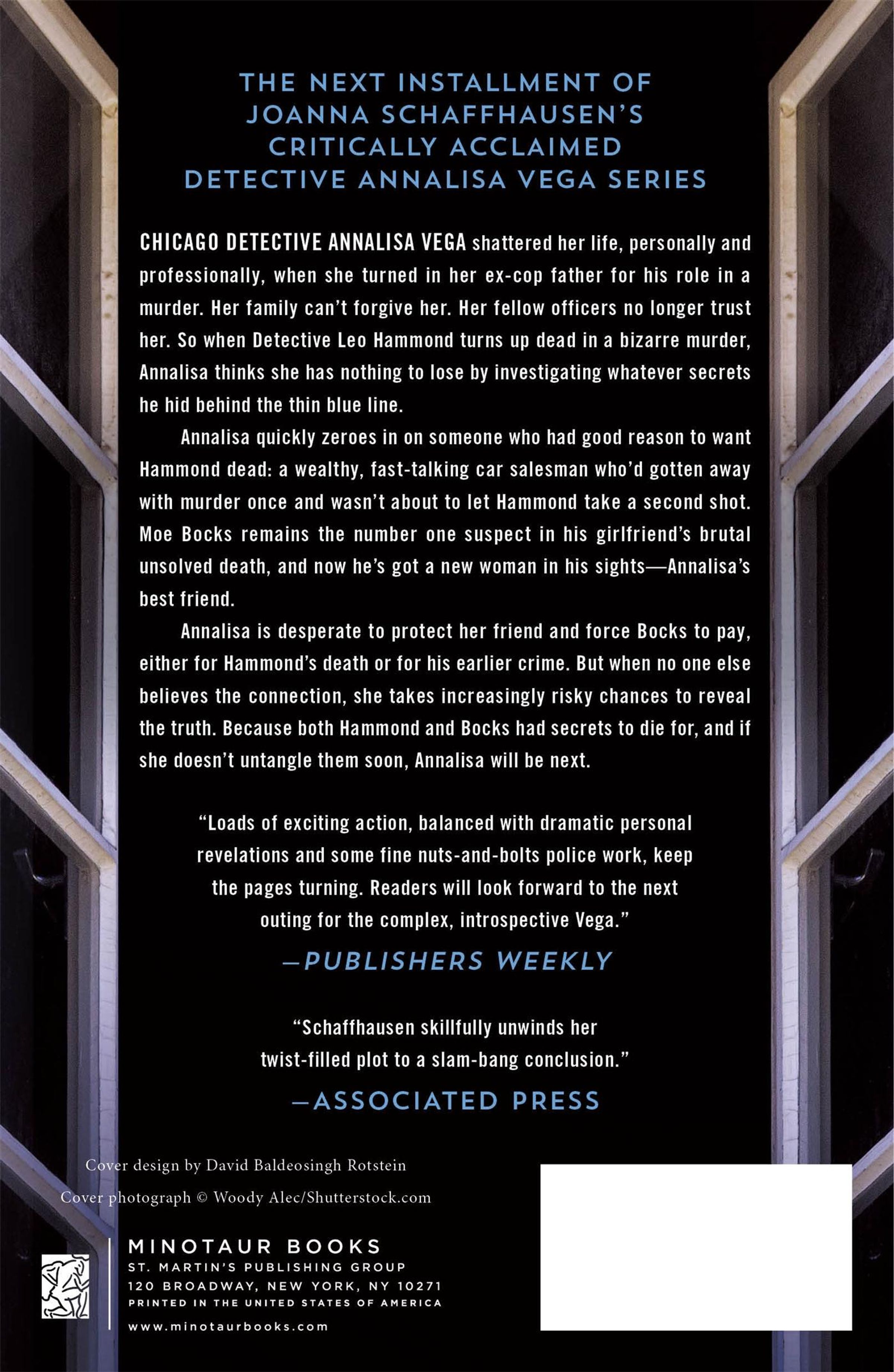 Chicago detective Annalisa Vega shattered her life, personally and professionally, when she turned in her ex-cop father for his role in a murder. Her family can't forgive her. Her fellow officers no longer trust her. So when detective Leo Hammond turns up dead in a bizarre murder, Annalisa thinks she has nothing to lose by investigating whatever secrets he hid behind the thin blue line.