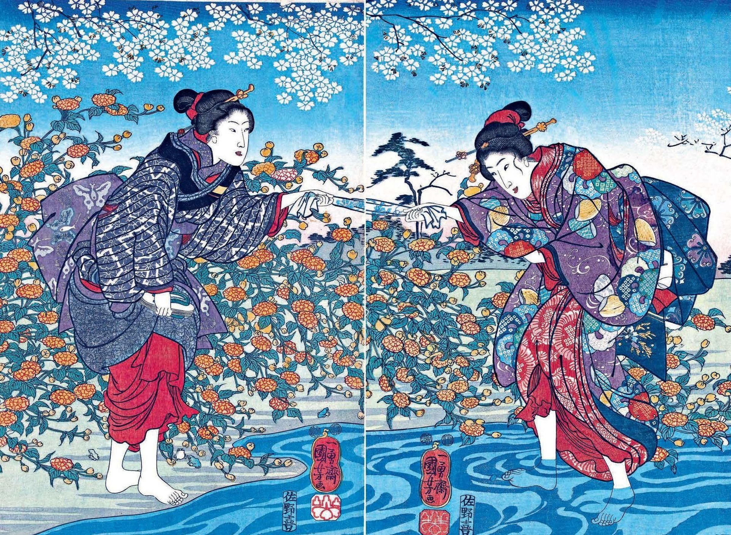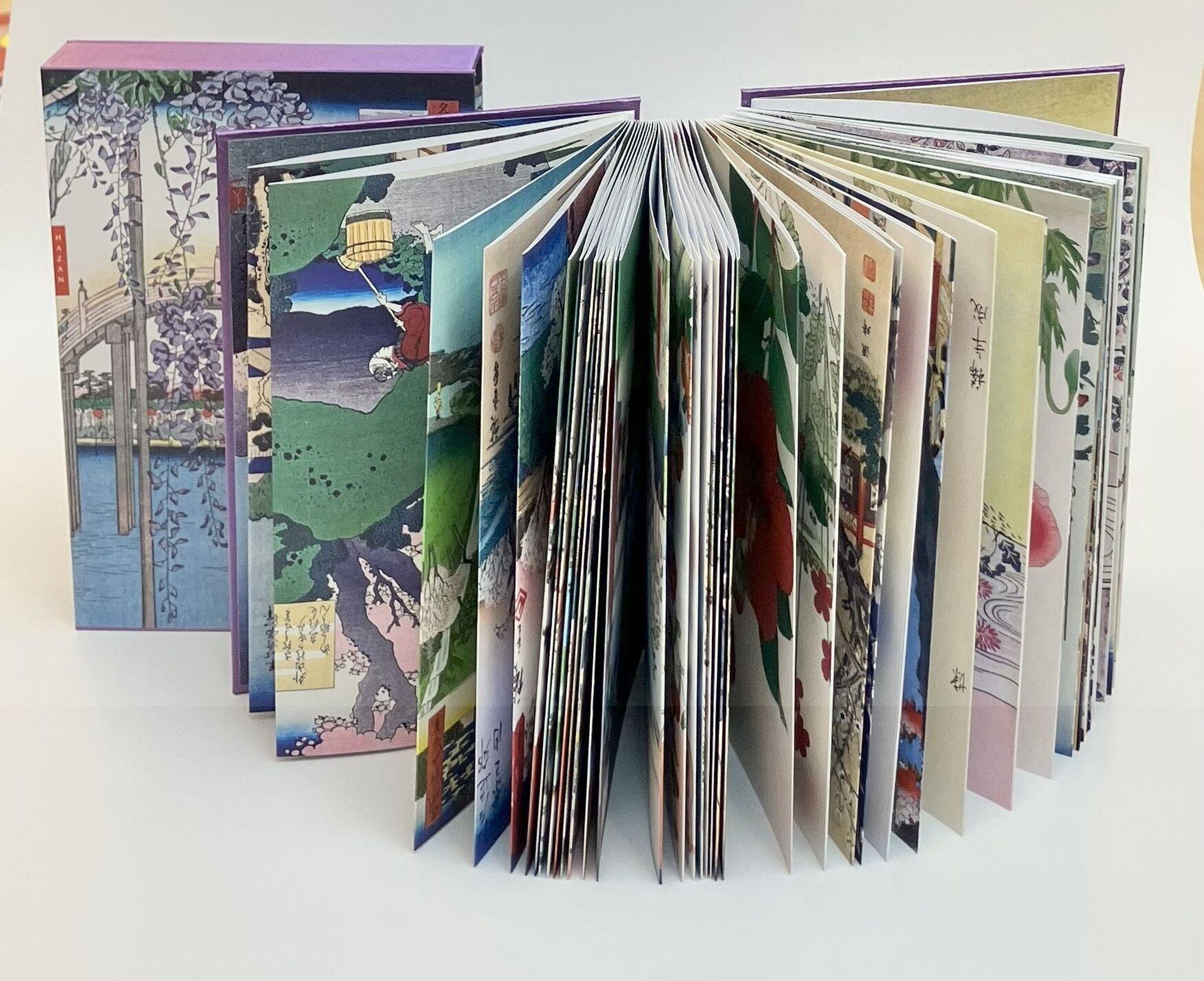 • Meisterwerke der japanischen Holzschnittkunst - Seidenbezogene Leporello-Ausgabe mit 60 Farbtafeln und 48-seitigem Booklet, im Schmuckschuber