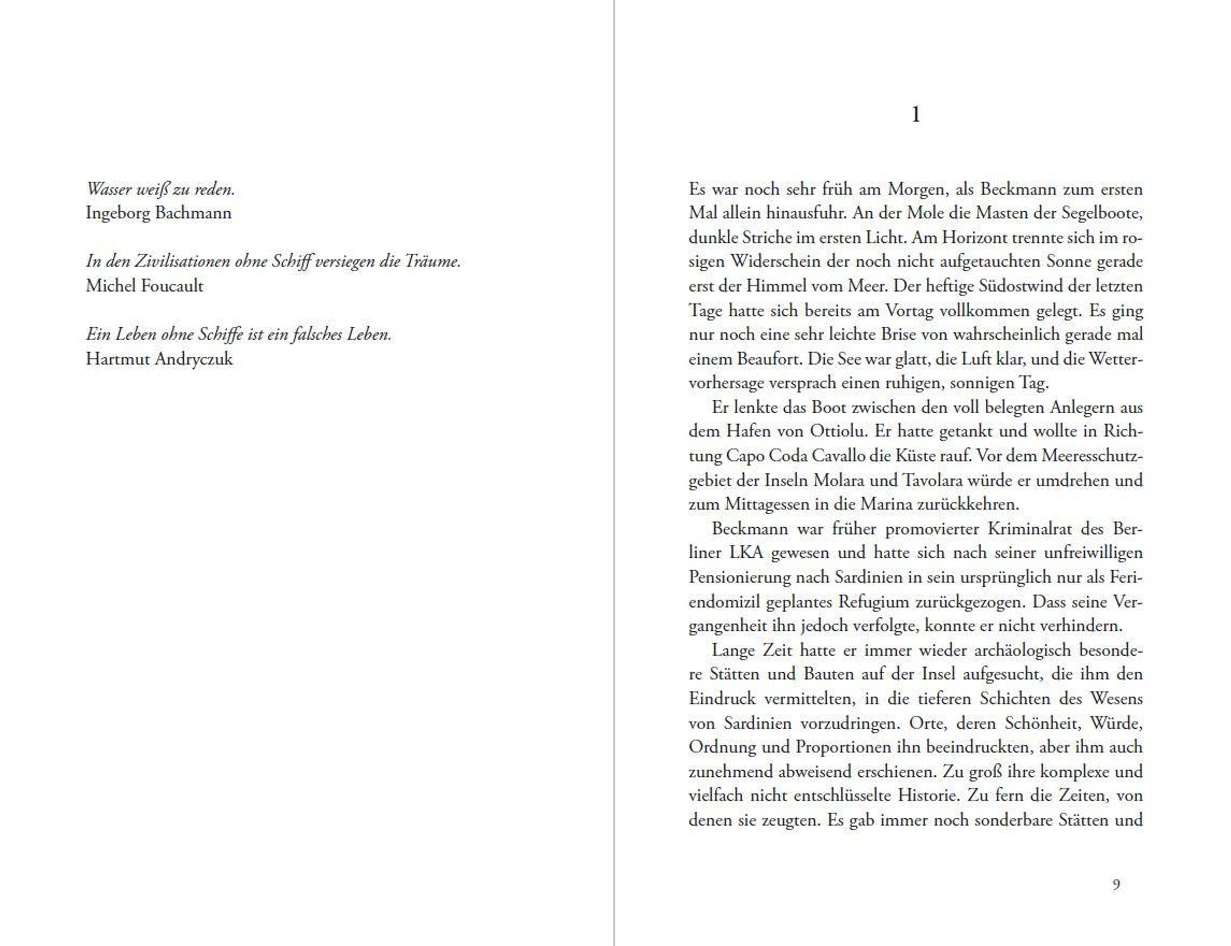 Gerhard Beckmann, zwangspensionierter Kriminalrat des LKA Berlin, dringt weiter in die Mythen und Geheimnisse Sardiniens ein. Als er zum ersten Mal allein vor der sardischen Ostküste aufs Meer fährt, macht er eine grausige Entdeckung. Sie erinnert ihn auf mysteriöse Weise an einen lange zurückliegenden Cold Case in Berlin. Er kann diesen Fund nicht vergessen, er muss dieser Spur folgen. Wieder verknüpft sich durch Beckmanns Erlebnisse deutsche Geschichte auf das Innigste mit der Vergangenheit und Gegenwart der Insel Sardinien ...