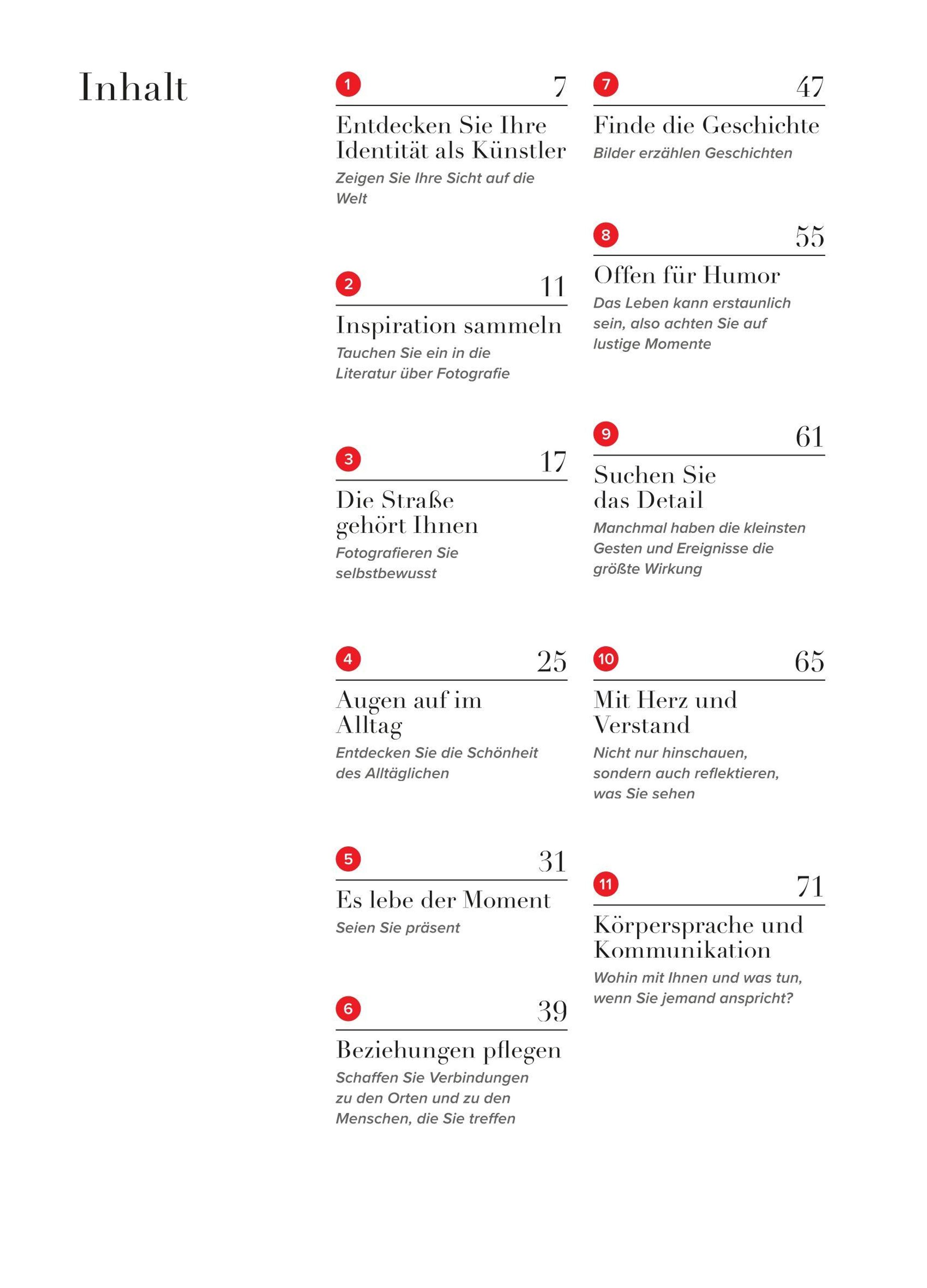 Die Fotografie-Legende Joel Meyerowitz zeigt, wie Sie eine Kamera wirklich einsetzen, um sich die Straße zu eigen zu machen, warum Sie immer offen sein sollten, wenn Sie die Welt betrachten, wie Sie Ihr Motiv in Szene setzen, wie wichtig es ist, das für Sie passende Objektiv zu finden und schließlich auch, wie Sie dem Spieltrieb freien Lauf lassen. Er berichtet von seinen Einflüssen und Erfahrungen, und verrät einige wertvolle Experten-Tipps und lüftet die Geheimnisse zu seinen besten Aufnahmen.