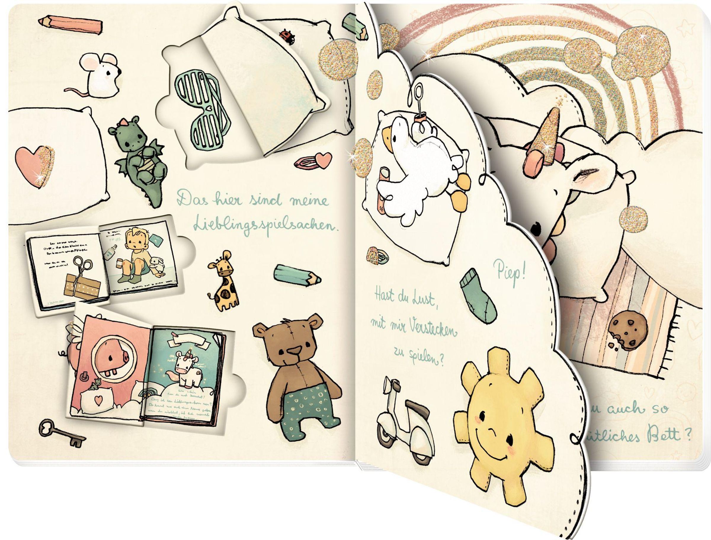 Tür auf und eintreten: Das Einhorn zeigt sein liebevoll gestaltetes Zuhause. Kinder entdecken glitzernde Details, öffnen Klappen und schieben Elemente hin und her. So werden sie Teil der Geschichte. Ein besonderes Kinderbuch, das die Fantasie anregt, Nähe schafft und gemeinsame Vorlesemomente bereichert.