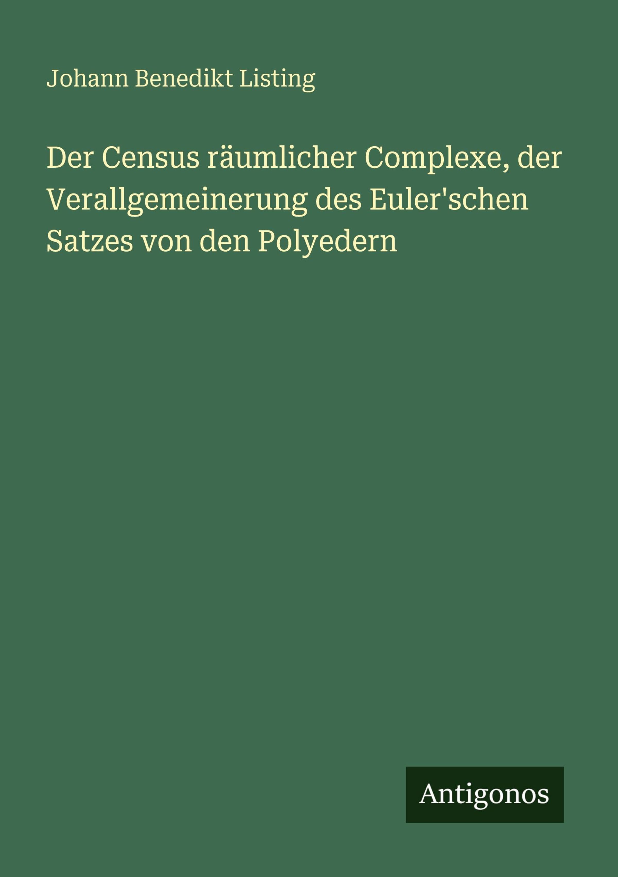 Johann Benedikt Listing: Der Census räumlicher Complexe, der Verallgemeinerung des Euler'schen Satzes von den..., Kartoniert / Broschiert