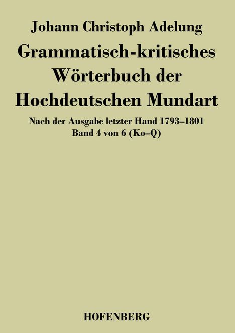 Johann Christoph Adelung: Grammatisch-kritisches Wörterbuch der Hochdeutschen Mundart. Nach der Ausgabe letzter Hand 17931801 Band 4 von 6 KöQ