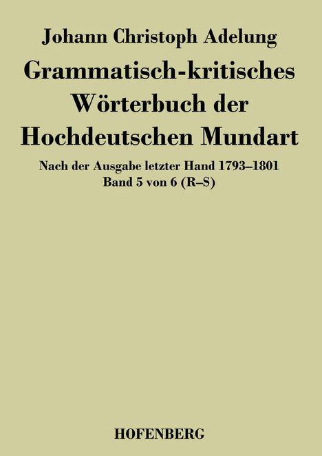 Johann Christoph Adelung: Grammatisch-kritisches Wörterbuch der Hochdeutschen Mundart. Nach der Ausgabe letzter Hand 17931801 Band 5 von 6 RS