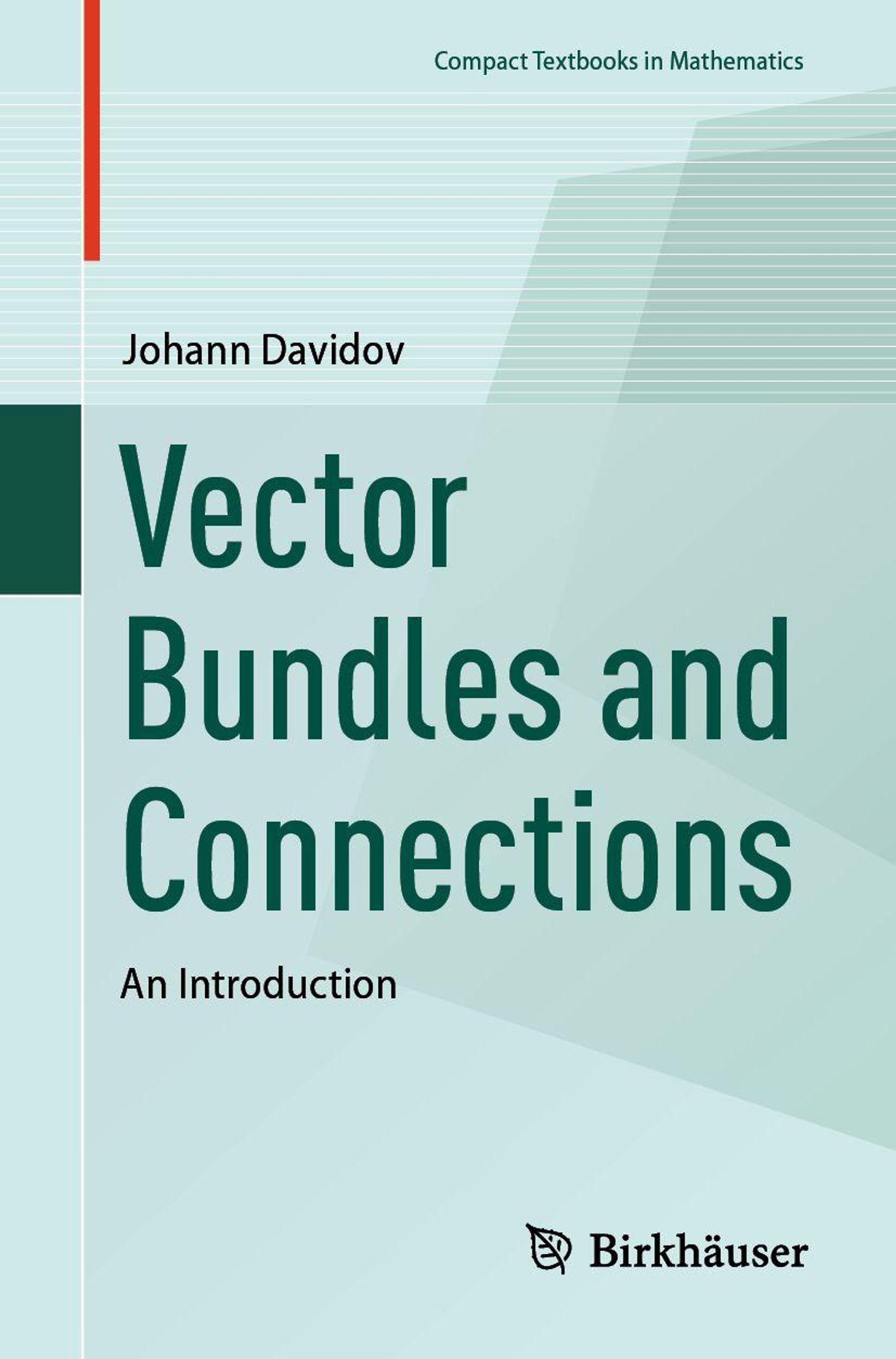Titel: "Vector Bundles and Connections" von Johann Davidov, Birkhäuser Verlag. Cover in grünen und blauen Tönen., Buch