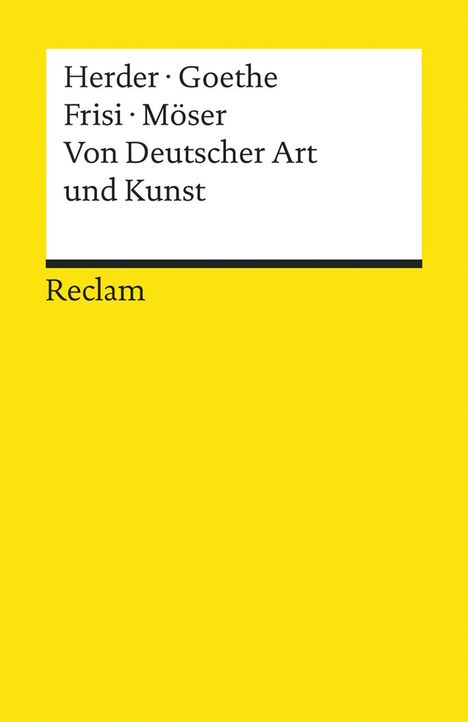 Der Erstdruck >>Von Deutscher Art und Kunst<< erschien ohne Herausgebernamen 1773 in Hamburg. Die fünf Teile der Sammlung entfalteten rasch große Wirkung: als Programmschrift einer jungen literarischen Generation, die in der Literaturgeschichtsschreibung bis heute Sturm und Drang genannt wird. Anonym erschienen hier Johann Gottfried Herders beiden Aufsätze >>Auszug aus einem Briefwechsel über Ossian und die Lieder alter Völker<< und >>Shakespear<< sowie Johann Wolfgang Goethes >>Von Deutscher Baukunst<<. Die Sammlung komplettieren Paolo Frisis >>Versuch über die Gothische Baukunst<< und Justus Mösers Beitrag >>Deutsche Geschichte<<.