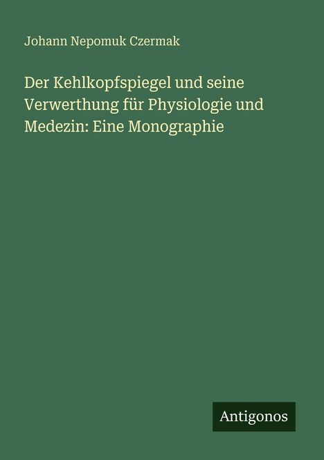 Johann Nepomuk Czermak: Der Kehlkopfspiegel und seine Verwerthung für Physiologie und Medezin: Eine Monographie, Kartoniert / Broschiert