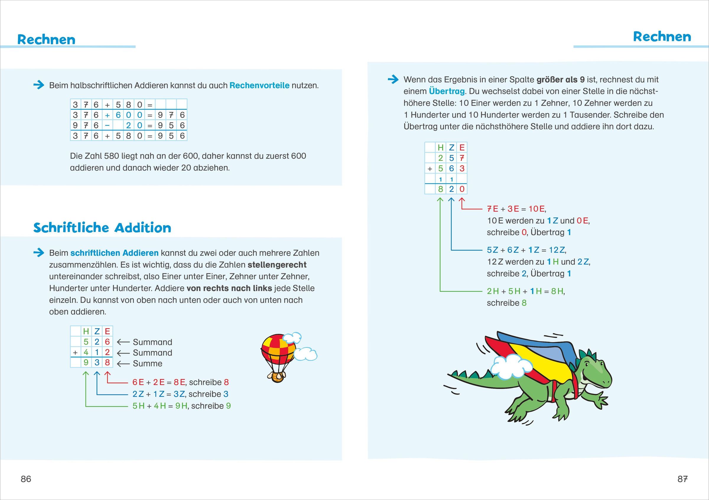 Das ganze Grundschulwissen in Mathe und Deutsch haben wir in einem Buch zusammengefasst: Zahlen und Grundrechenarten, Geometrie, das Rechnen mit Größen, Wortarten und Satzglieder, Rechtschreibregeln, Text- und Aufsatzarten - übersichtlich dargestellt und kindgerecht erklärt. Eine herausnehmbare Lerntafel liefert das Wichtigste auf einen Blick. Mit diesem umfassenden Nachschlagewerk behalten Kinder den Überblick über die wichtigsten Grundlagen und Eltern haben ein verlässliches Hilfsmittel zur Hand, um beim Üben und Wiederholen zu unterstützen. Der perfekte Begleiter durch die Grundschulzeit!