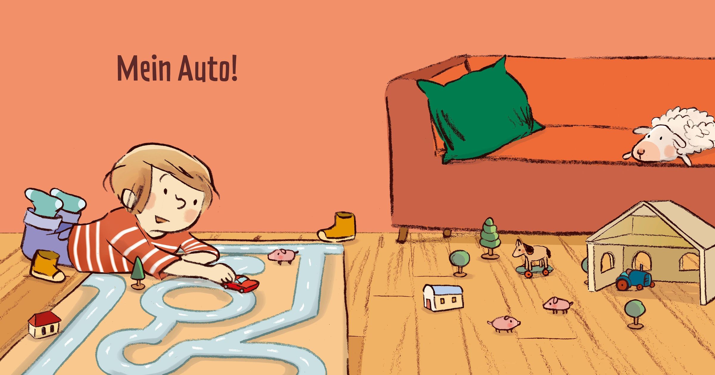 Das Kind in diesem Pappbilderbuch hat viele Dinge - und am liebsten hätte es alles ganz für sich allein.
