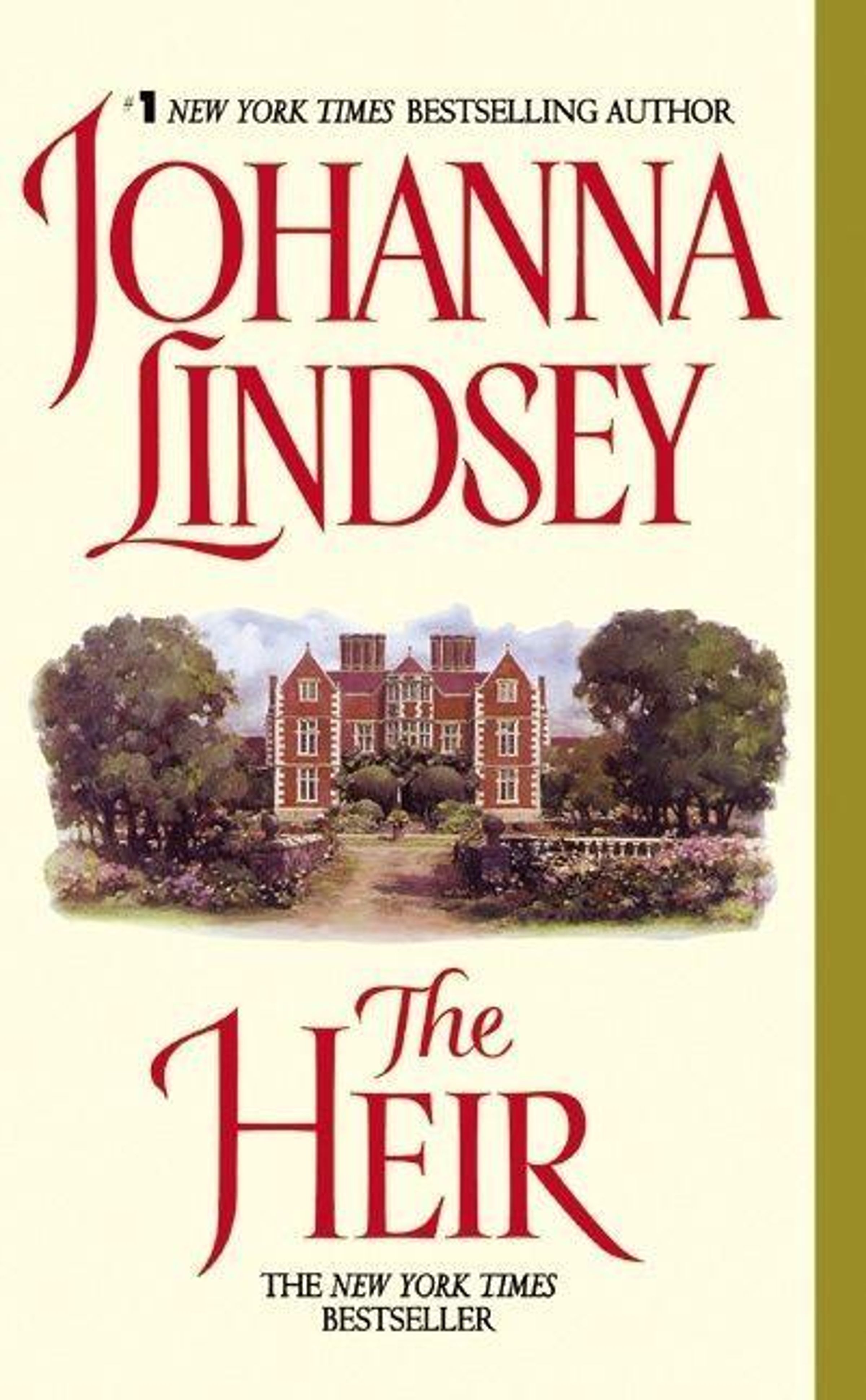„#1 NEW YORK TIMES BESTSELLING AUTHOR: JOHANNA LINDSEY. The Heir. THE NEW YORK TIMES BESTSELLER.“ Illustration eines Herrenhauses., Buch