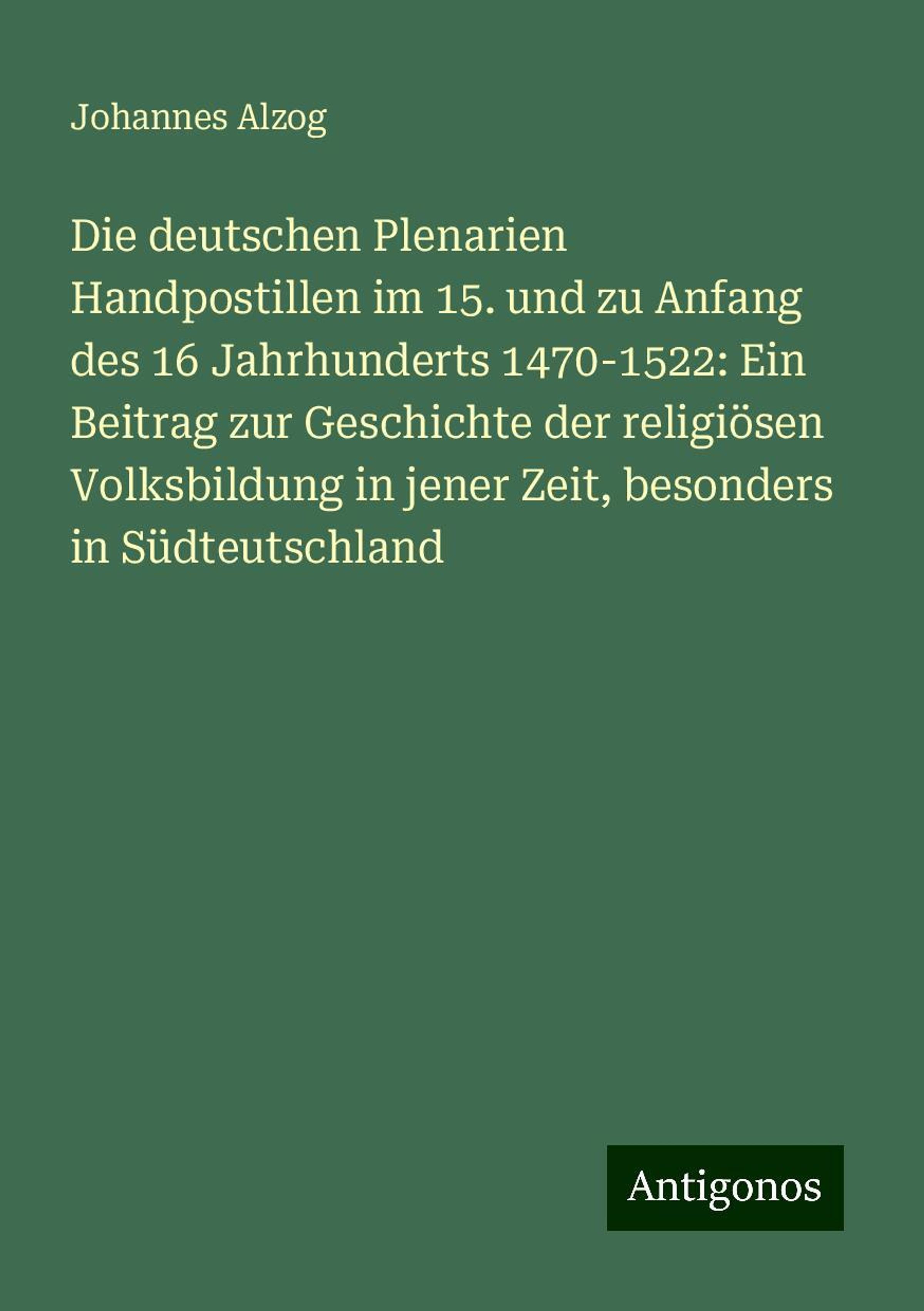 Alzog, J: Die deutschen Plenarien Handpostillen im 15. und z