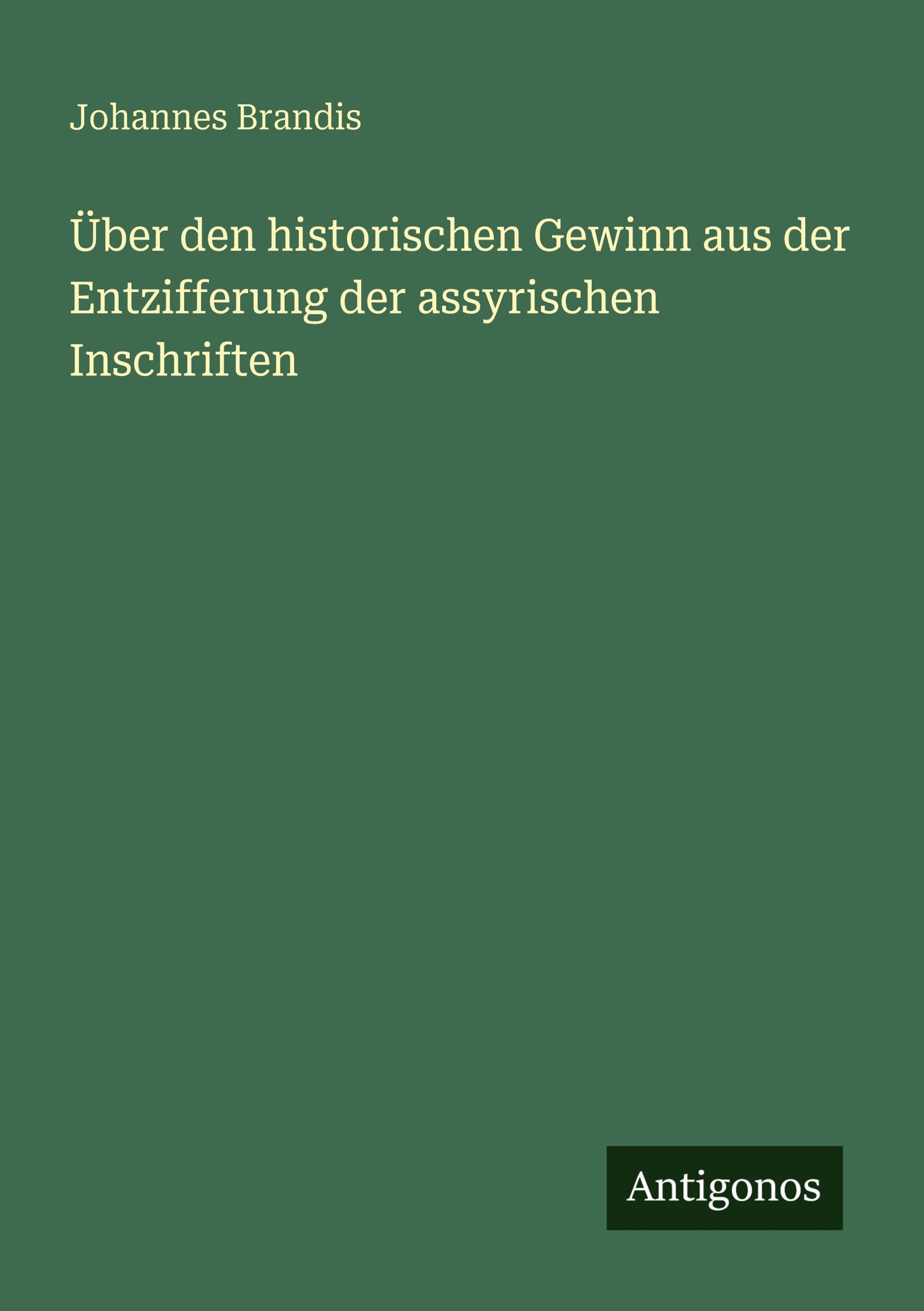 Johannes Brandis: Über den historischen Gewinn aus der Entzifferung der assyrischen Inschriften, Kartoniert / Broschiert