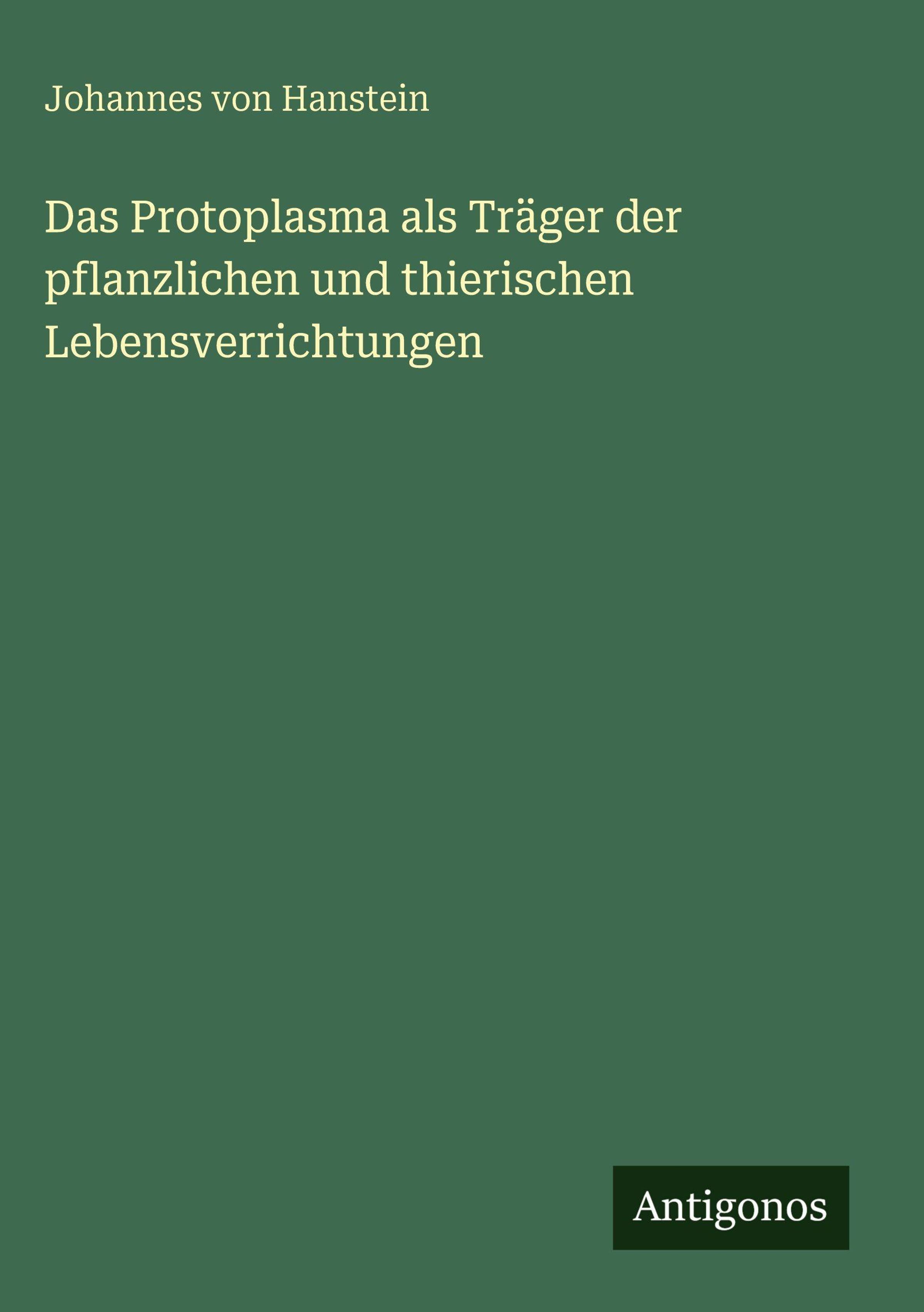 Johannes Von Hanstein: Das Protoplasma als Träger der pflanzlichen und thierischen Lebensverrichtungen, Gebunden