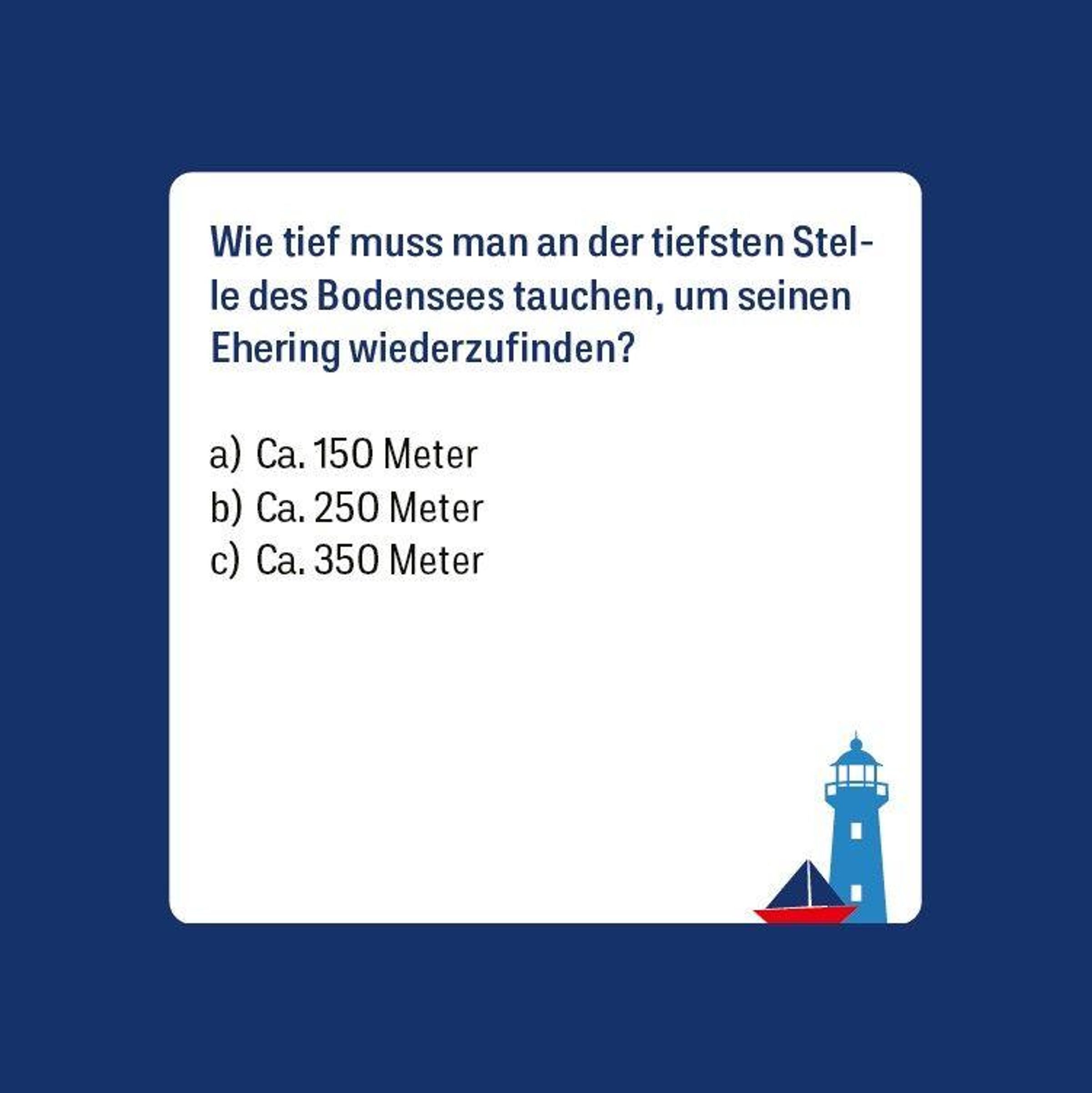 „Bodensee Quiz“ steht auf der Schachtel. Eine Illustration zeigt einen Leuchtturm und ein Boot., Spiele
