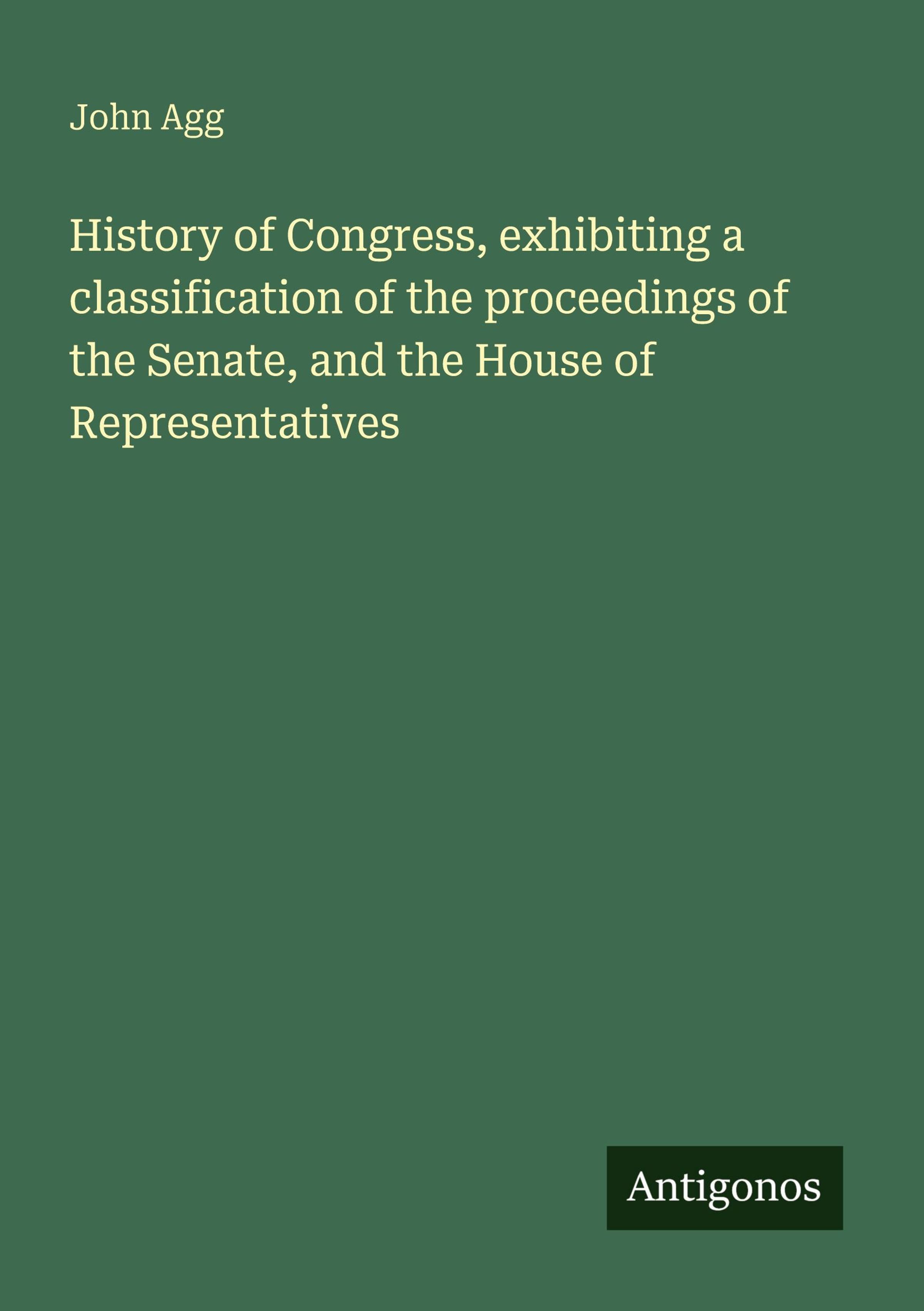 John Agg: History of Congress, exhibiting a classification of the proceedings of the Senate, and the House of..., Kartoniert / Broschiert