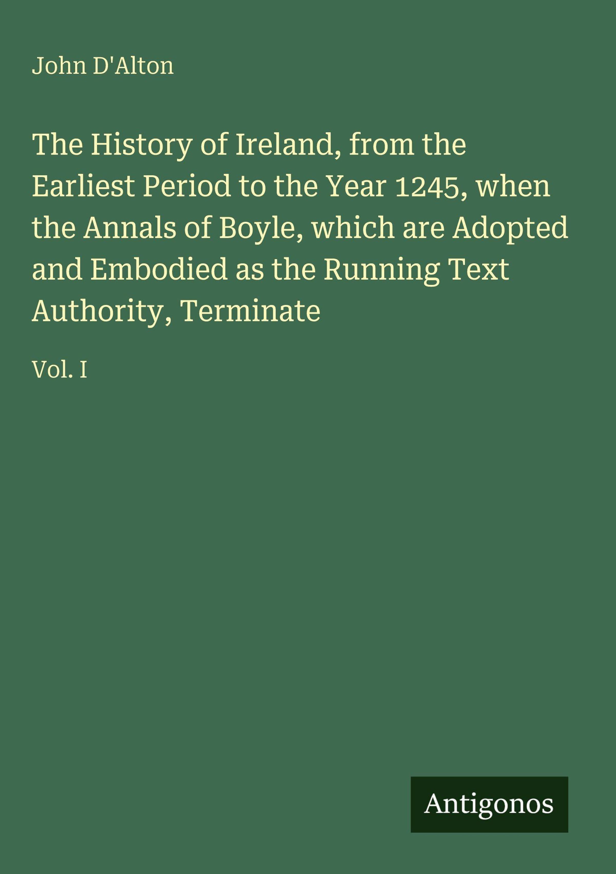 John D'Alton: The History of Ireland, from the Earliest Period to the Year 1245, when the Annals of Boyle, which..., Gebunden