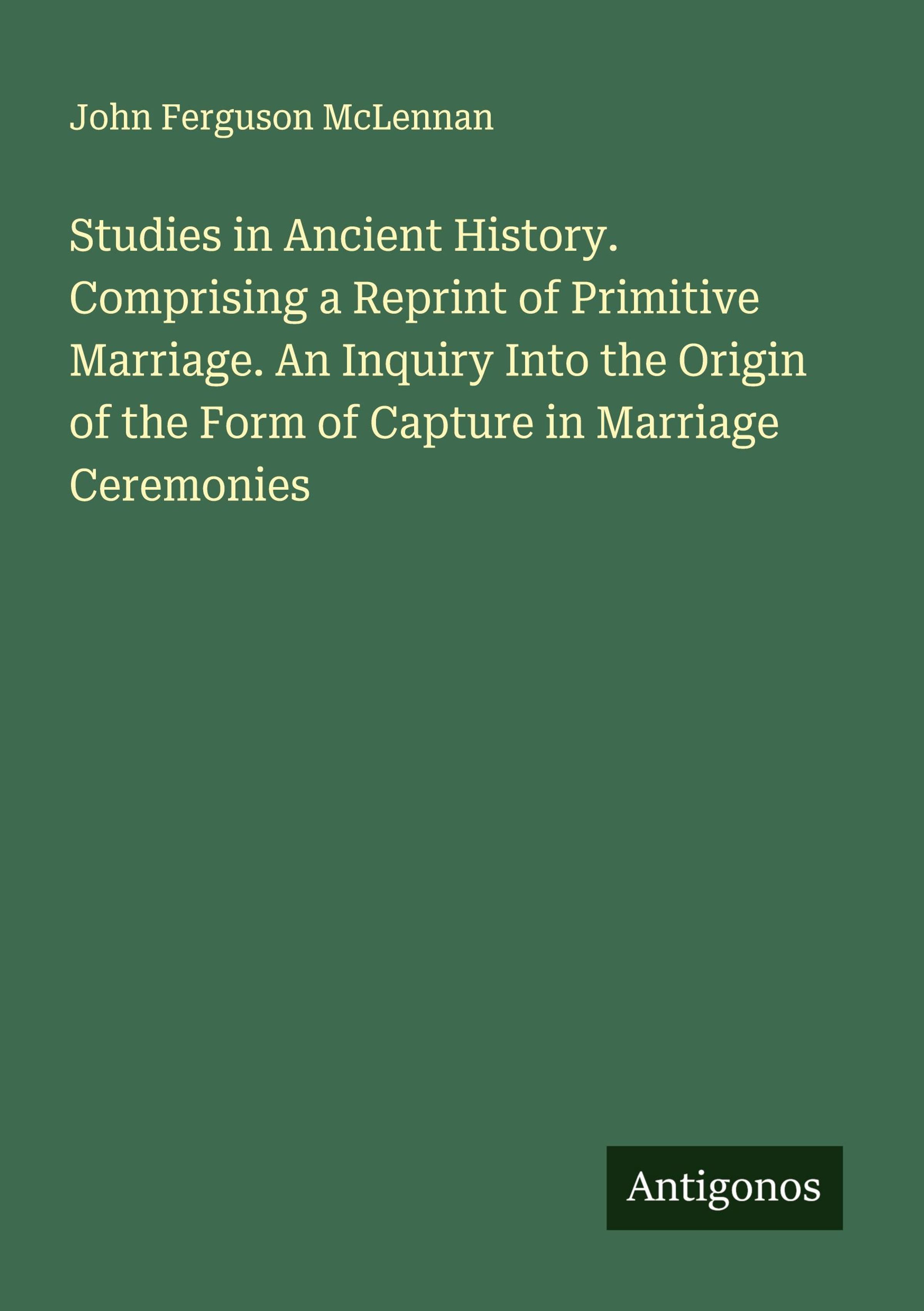 Studies in Ancient History. Comprising a Reprint of Primitive Marriage. An Inquiry Into the Origin of the Form of Capture in Marriage Ceremonies