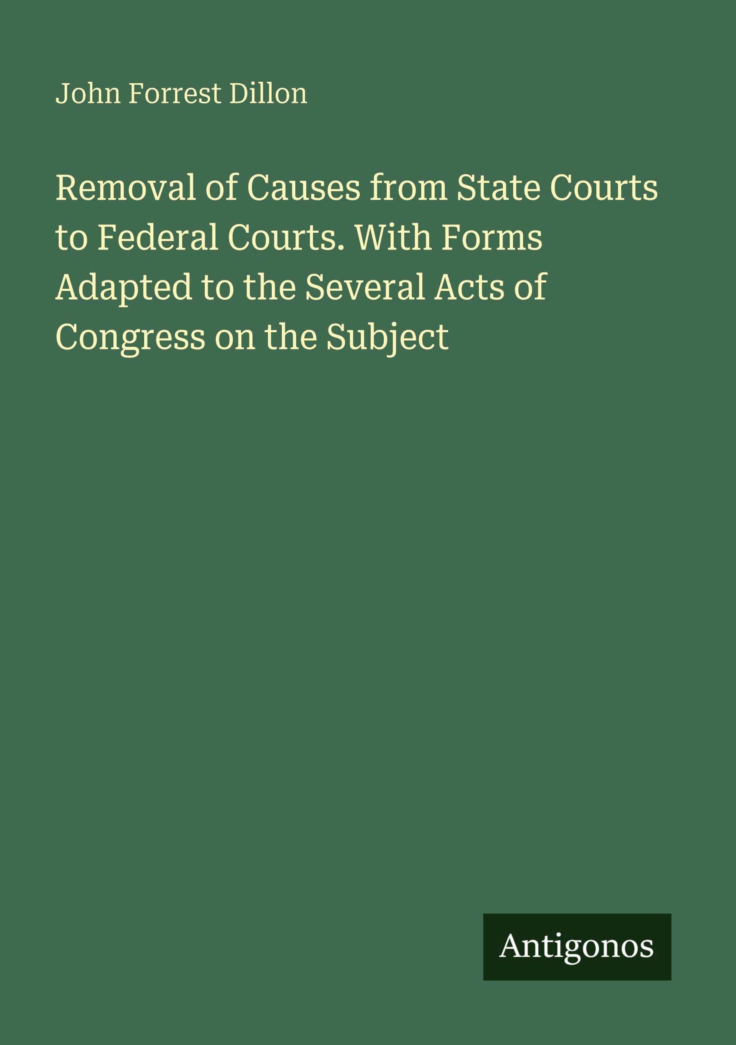 Removal of Causes from State Courts to Federal Courts. With Forms Adapted to the Several Acts of Congress on the Subject