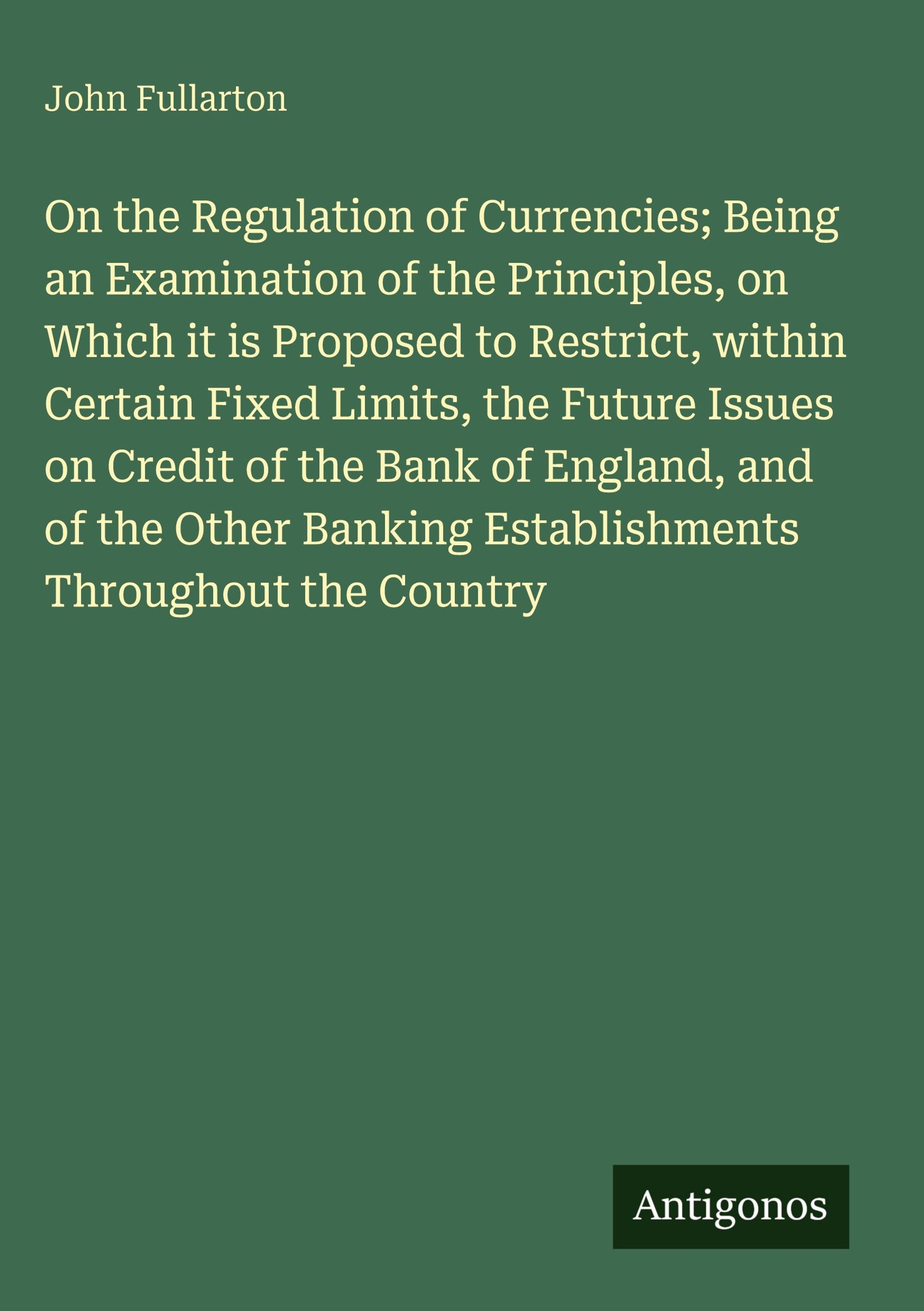 John Fullarton: On the Regulation of Currencies; Being an Examination of the Principles, on Which it is Proposed..., Gebunden