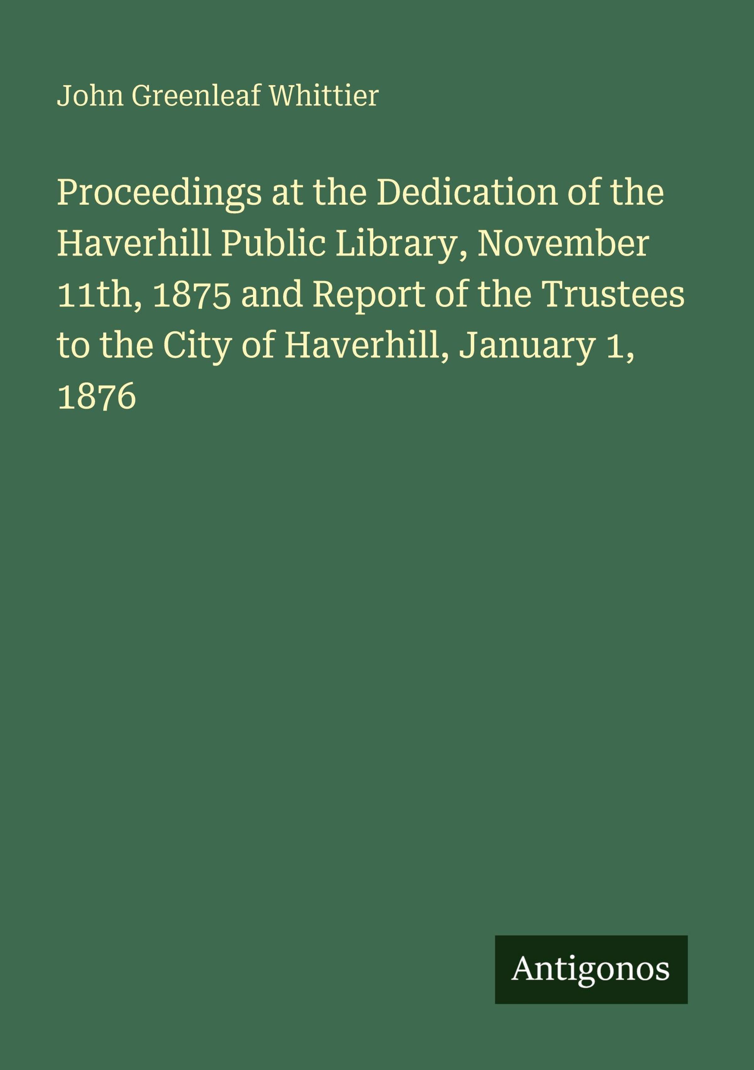 Proceedings at the Dedication of the Haverhill Public Library, November 11th, 1875 and Report of the Trustees to the City of Haverhill, January 1, 1876