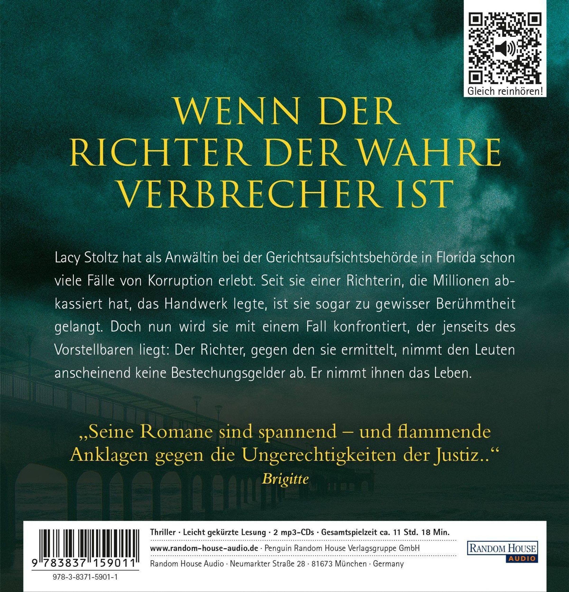 Lacy Stoltz hat als Anwältin bei der Rechtsaufsichtsbehörde in Florida schon viele Fälle von Korruption erlebt. Seit sie einen Richter, der Millionen abkassiert hat, zu Fall brachte, ist sie sogar zu gewisser Berühmtheit gelangt. Doch nun wird sie mit einem Fall konfrontiert, der jenseits des Vorstellbaren liegt: Denn der Richter, gegen den sie ermittelt, nimmt anscheinend keine Bestechungsgelder von Leuten. Er nimmt ihnen das Leben.