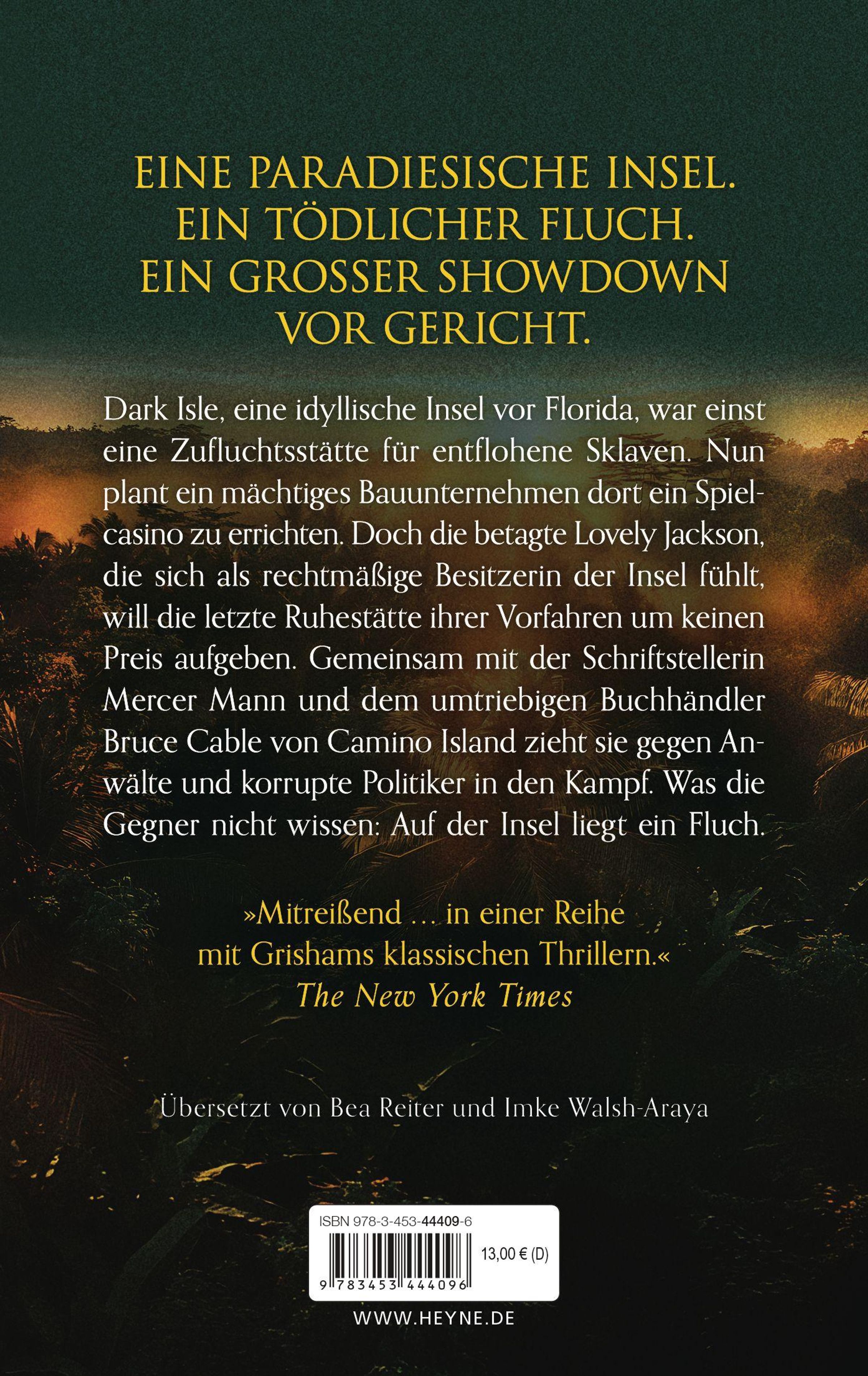 "John Grisham, Die Legende, Roman, Spiegel Bestseller. Eine Straße entlang eines Strandes bei Sonnenuntergang mit Palmen.", Buch