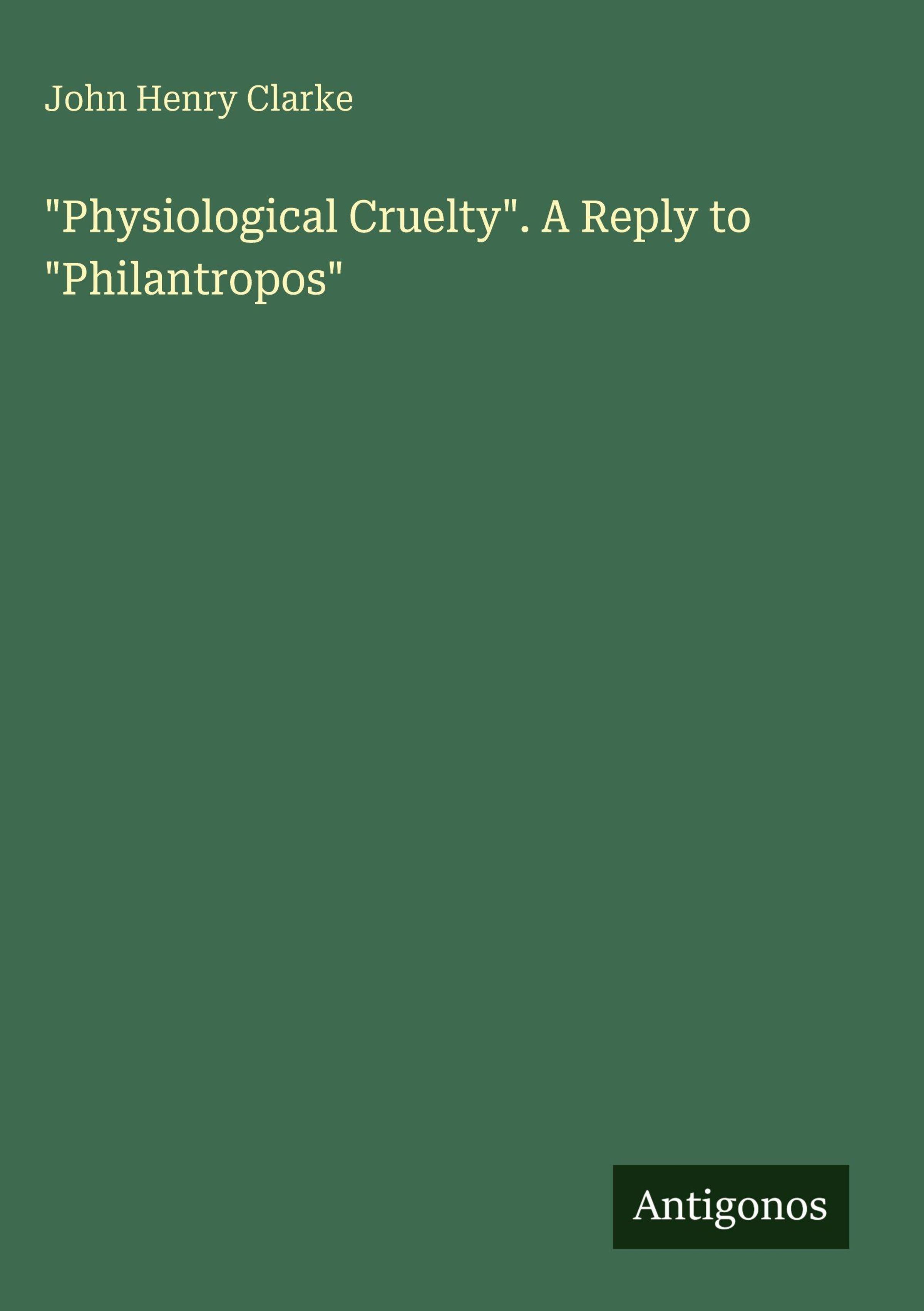 John Henry Clarke: "Physiological Cruelty". A Reply to "Philantropos", Gebunden